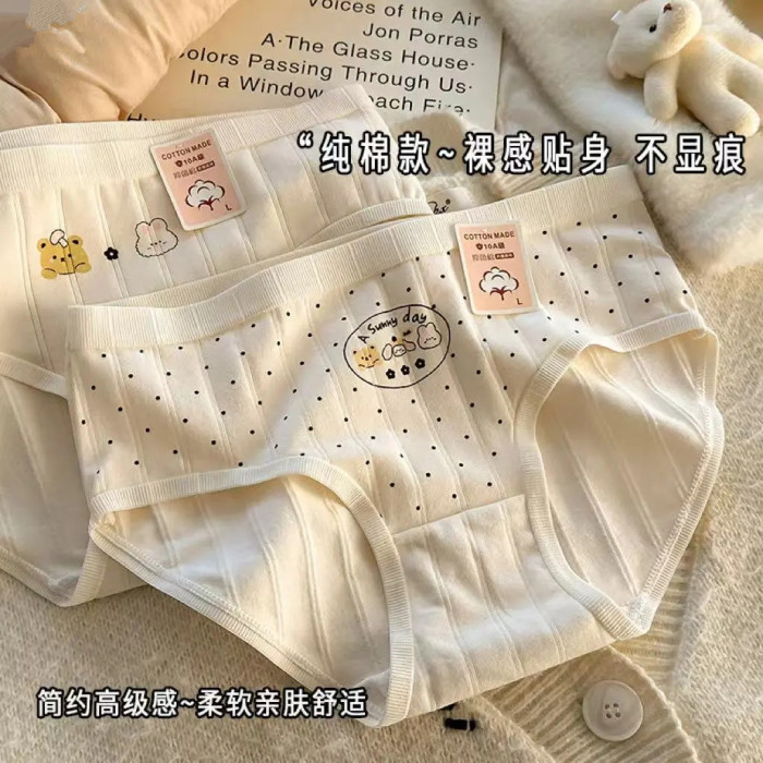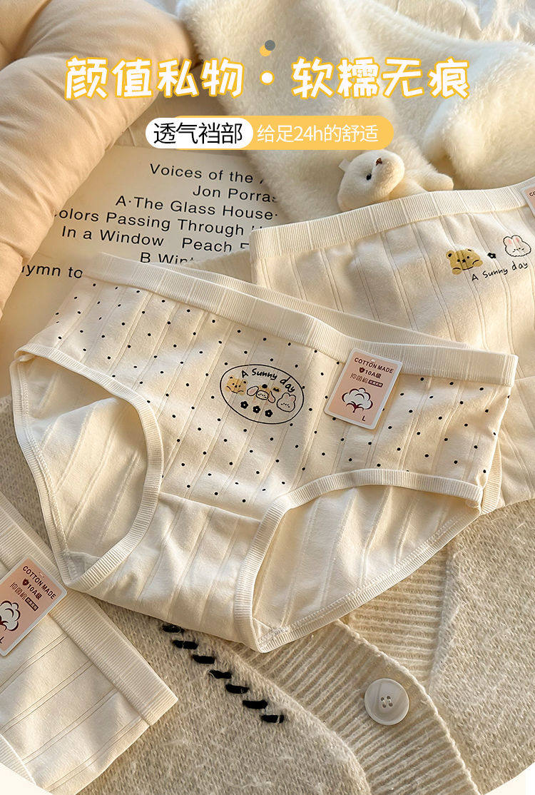 卡通運動透氣抗菌簡約少女純棉襠內褲女中腰甜美學生三角褲女