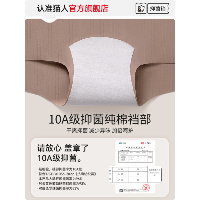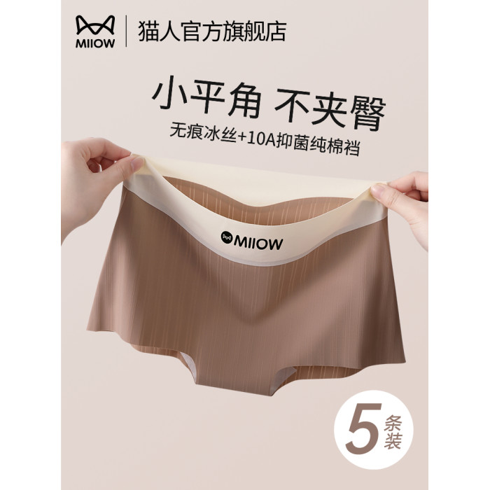 貓人無痕冰絲平角內褲女士夏季薄款純棉襠10A抑菌不夾臀四角短褲T