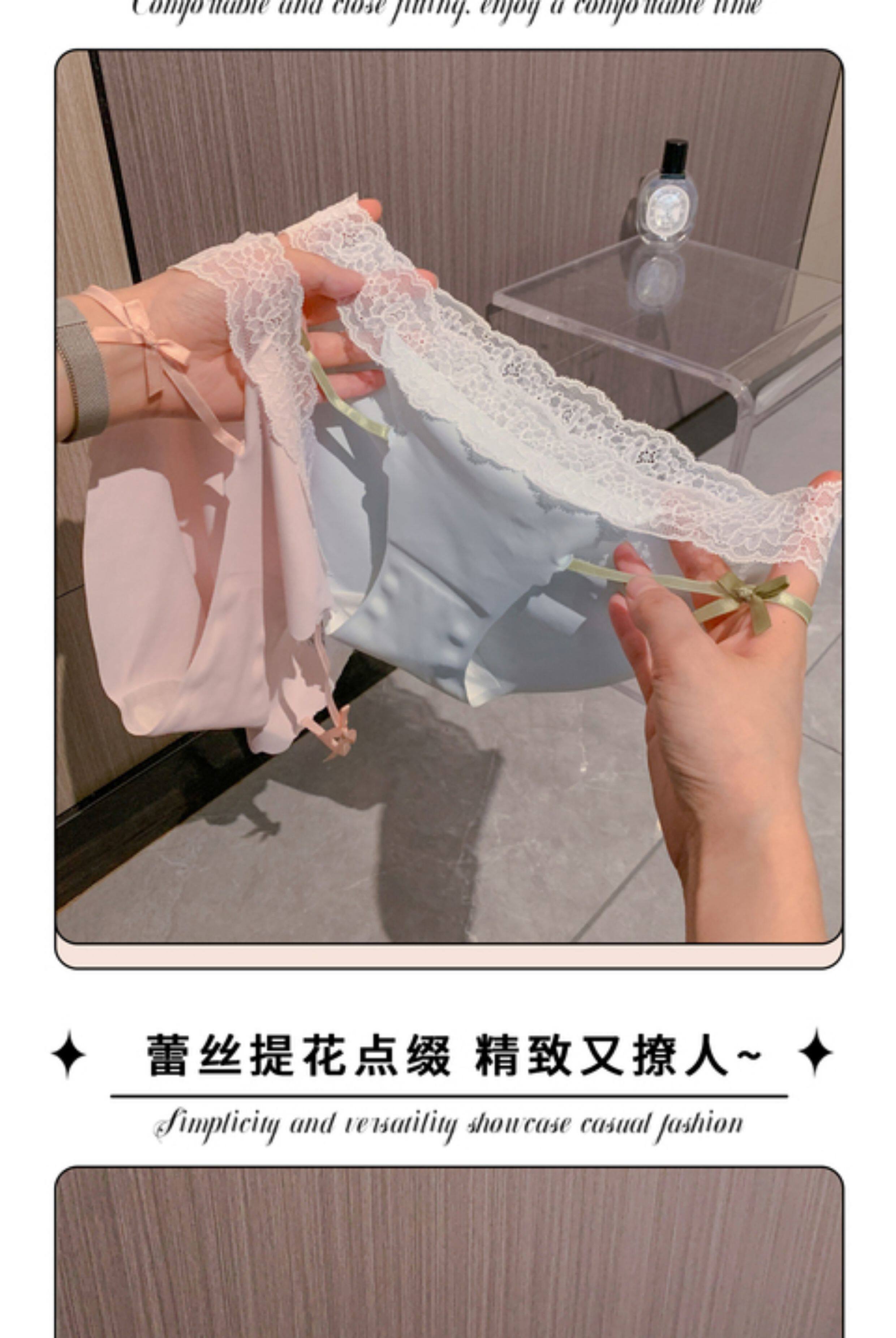 粉霧輕喃~女生純欲風少女感無痕內褲女2025新款蝴蝶結蕾絲女薄款