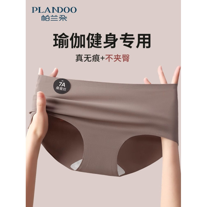 無痕內褲女士桑蠶絲純棉抗菌不夾臀女生夏季薄款瑜珈運動三角短褲