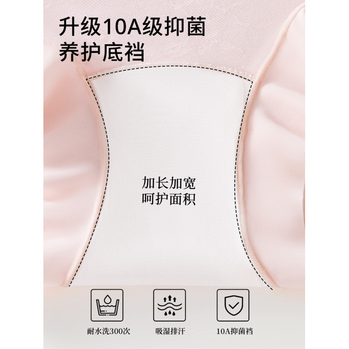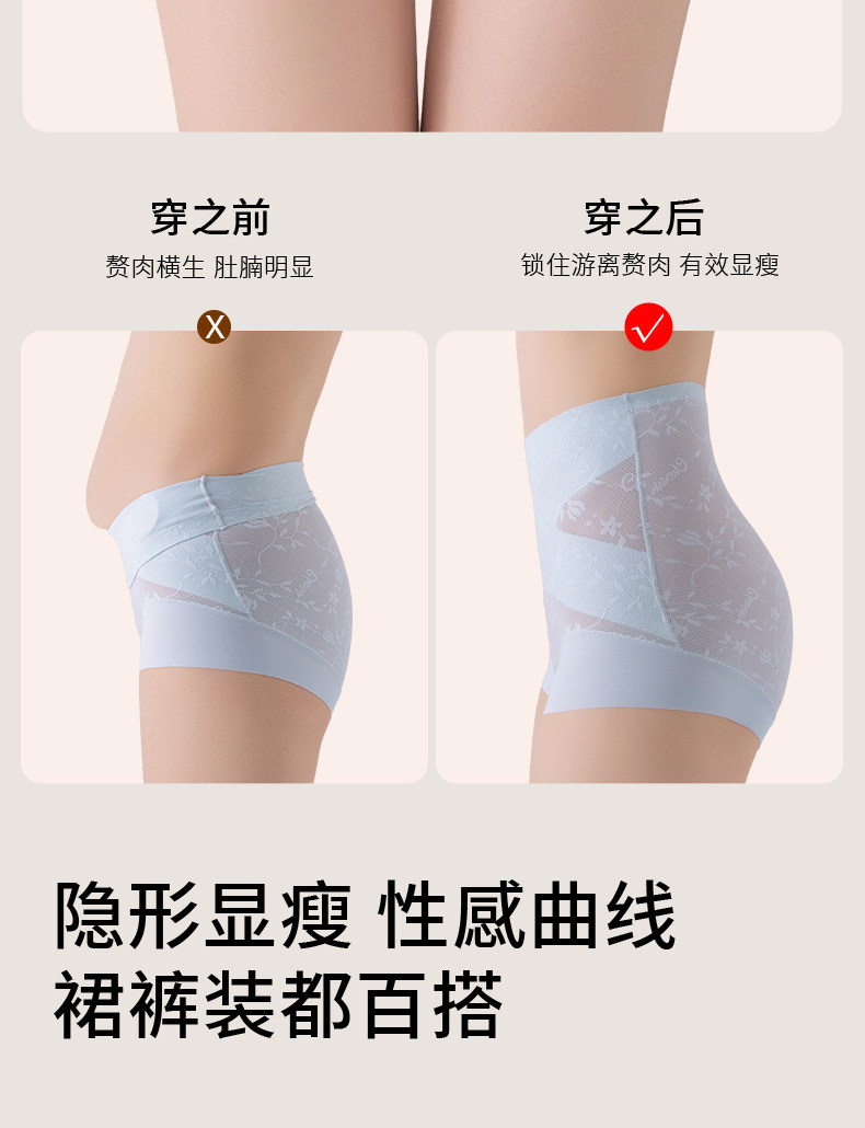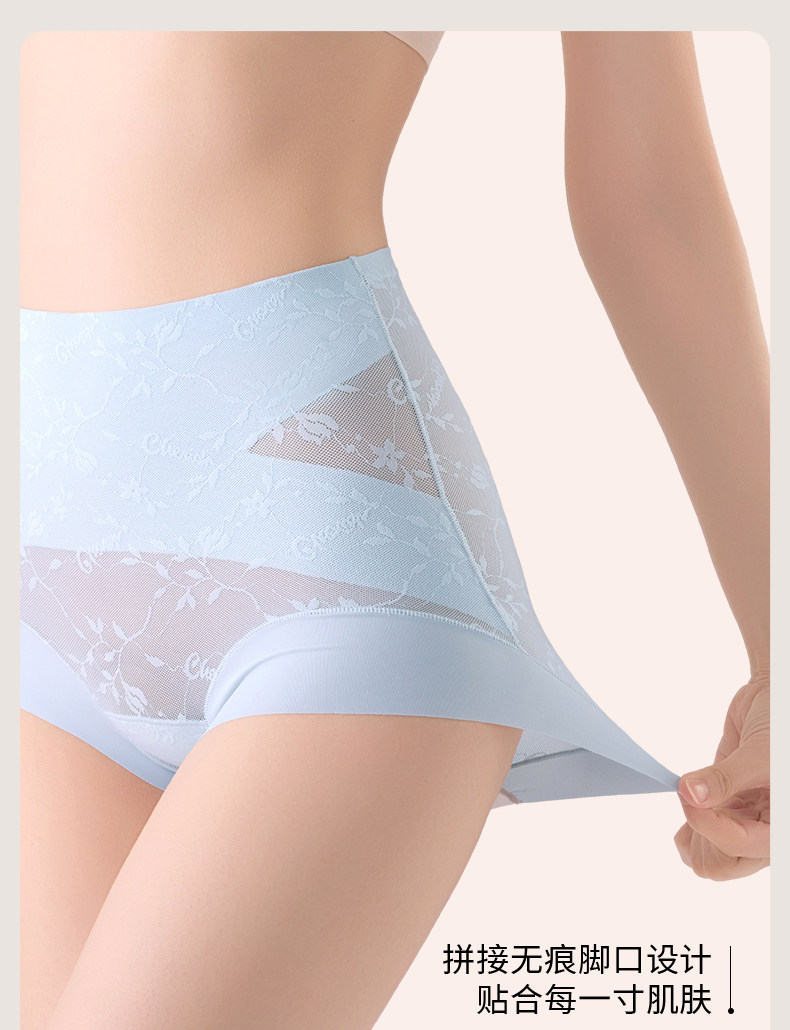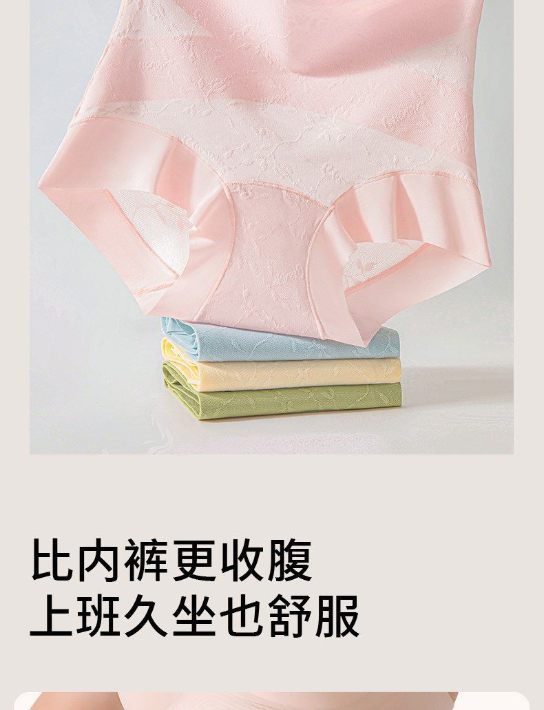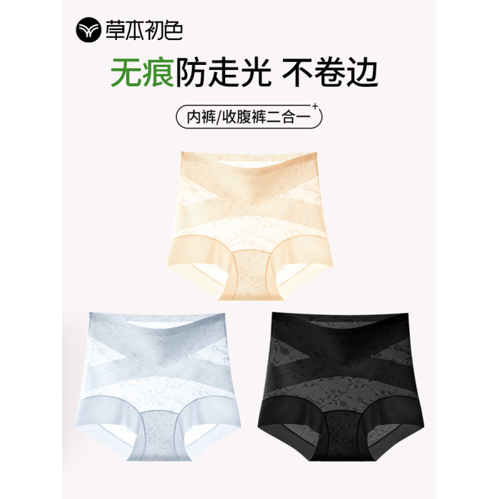 草本初色冰絲收腹加長襠內褲女士無痕10A抑菌高腰不夾臀三角褲