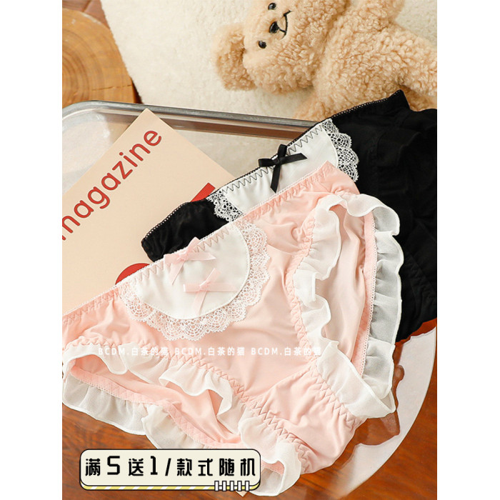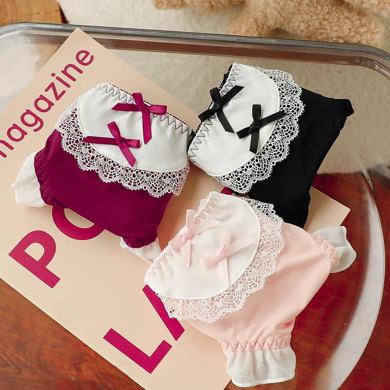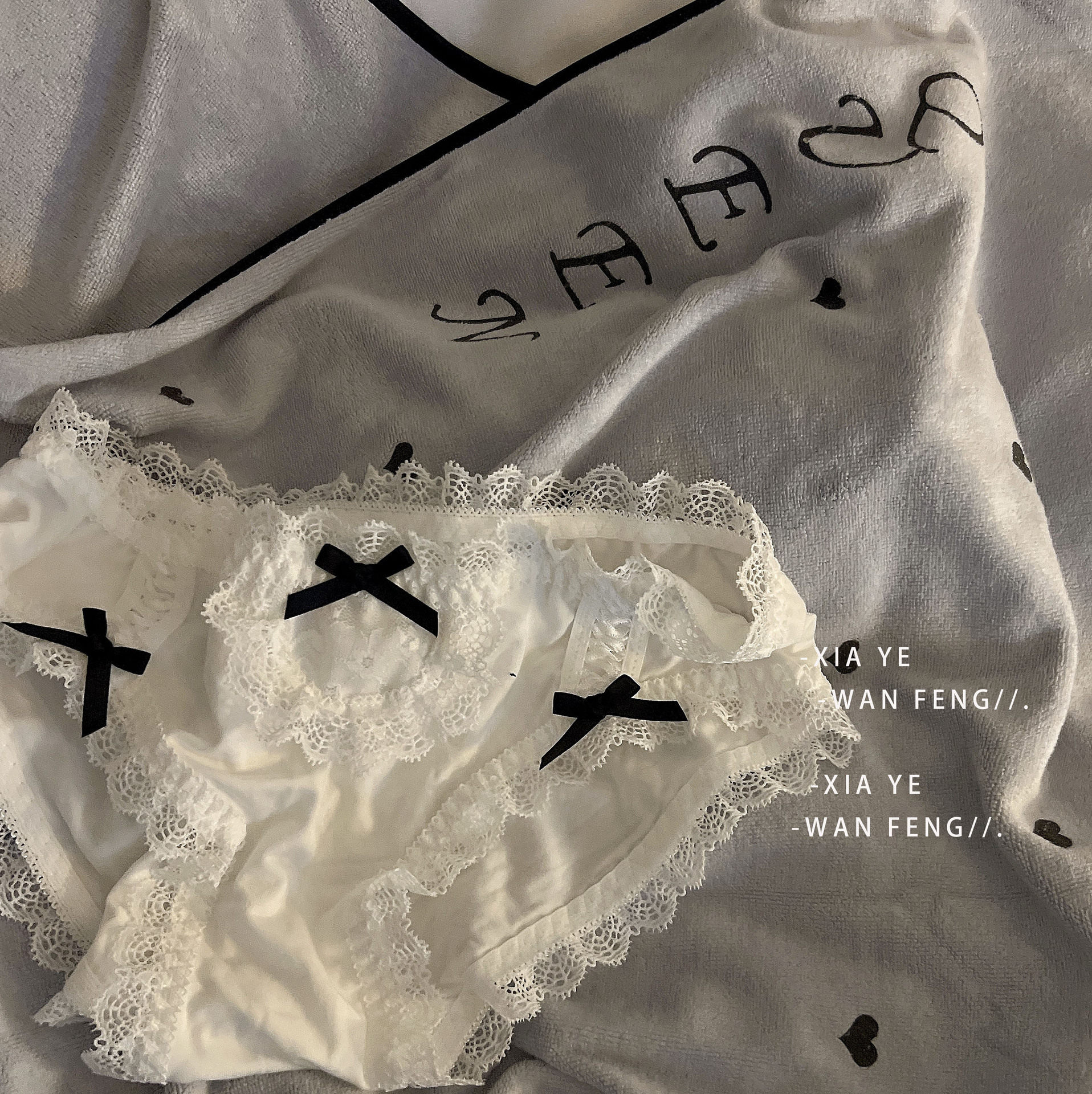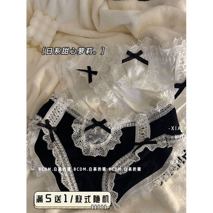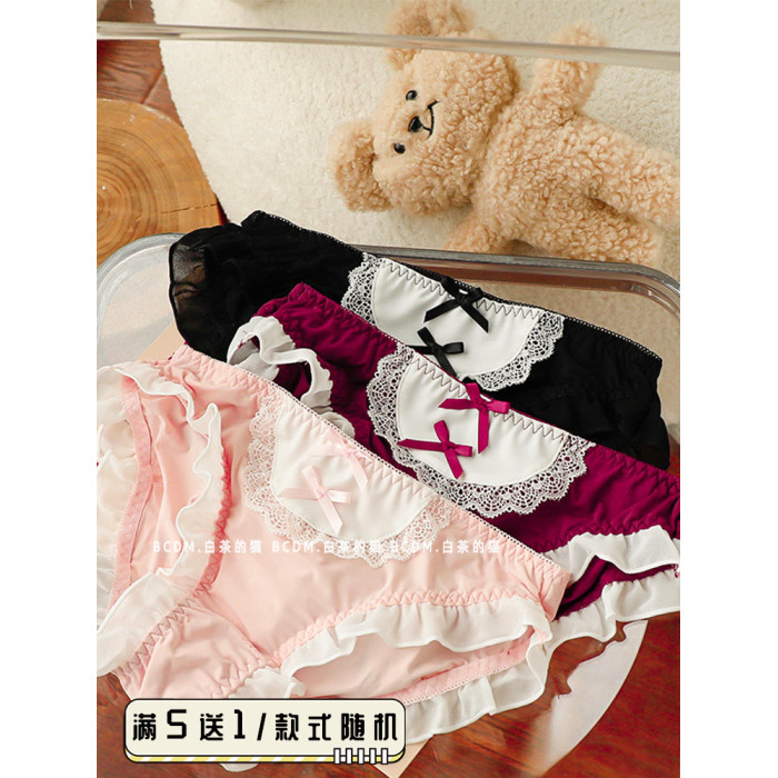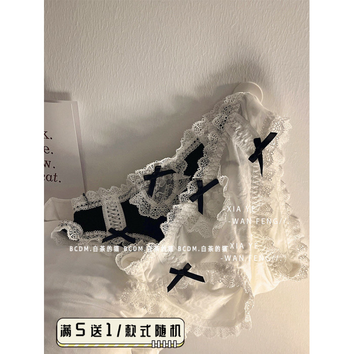 白茶的貓日系甜美鏤空蕾絲內褲女生純欲低腰蝴蝶結女僕三角褲