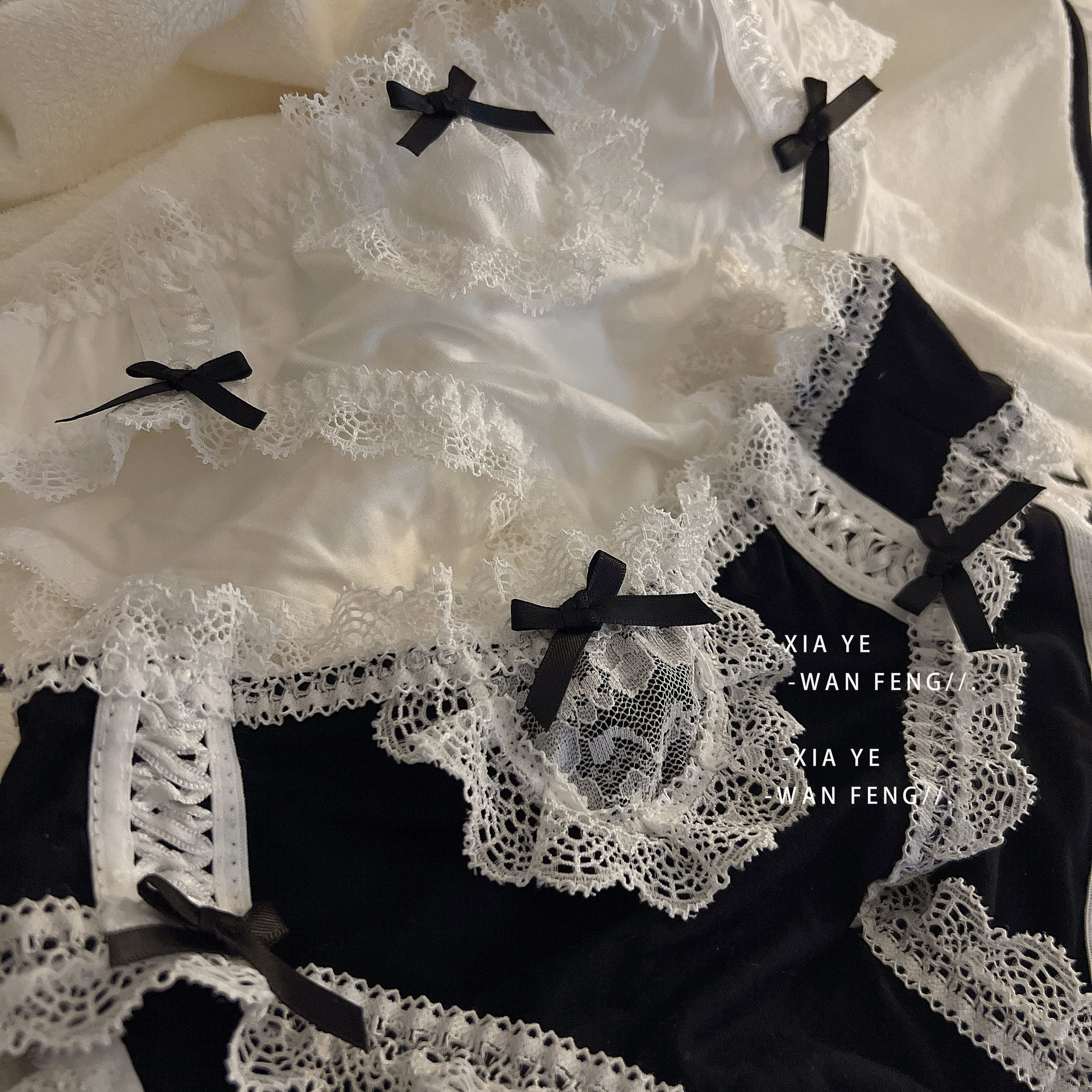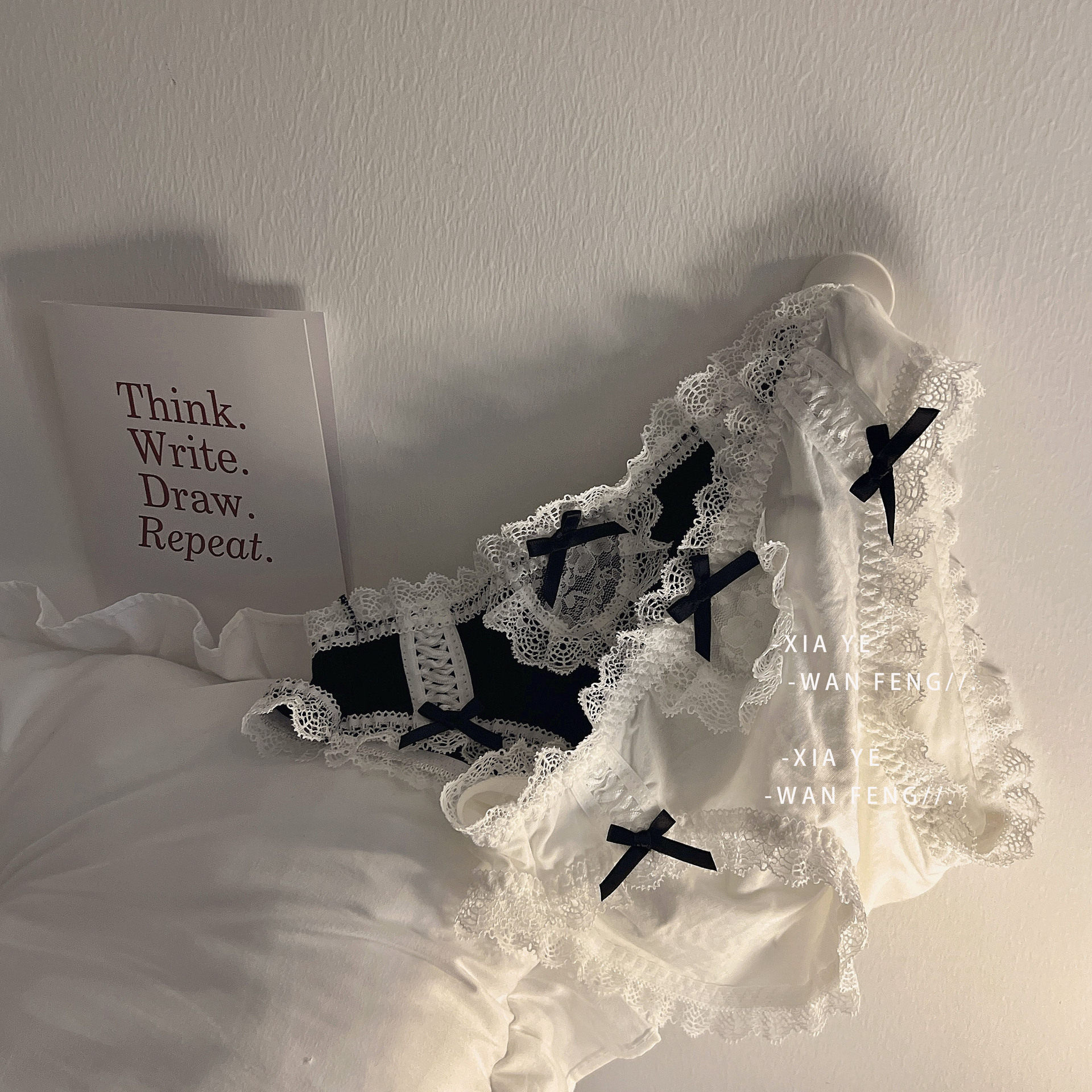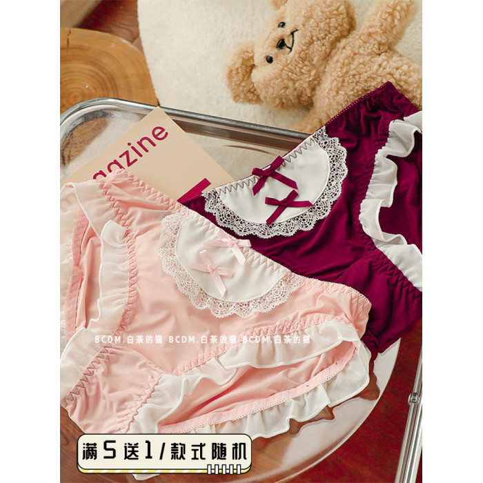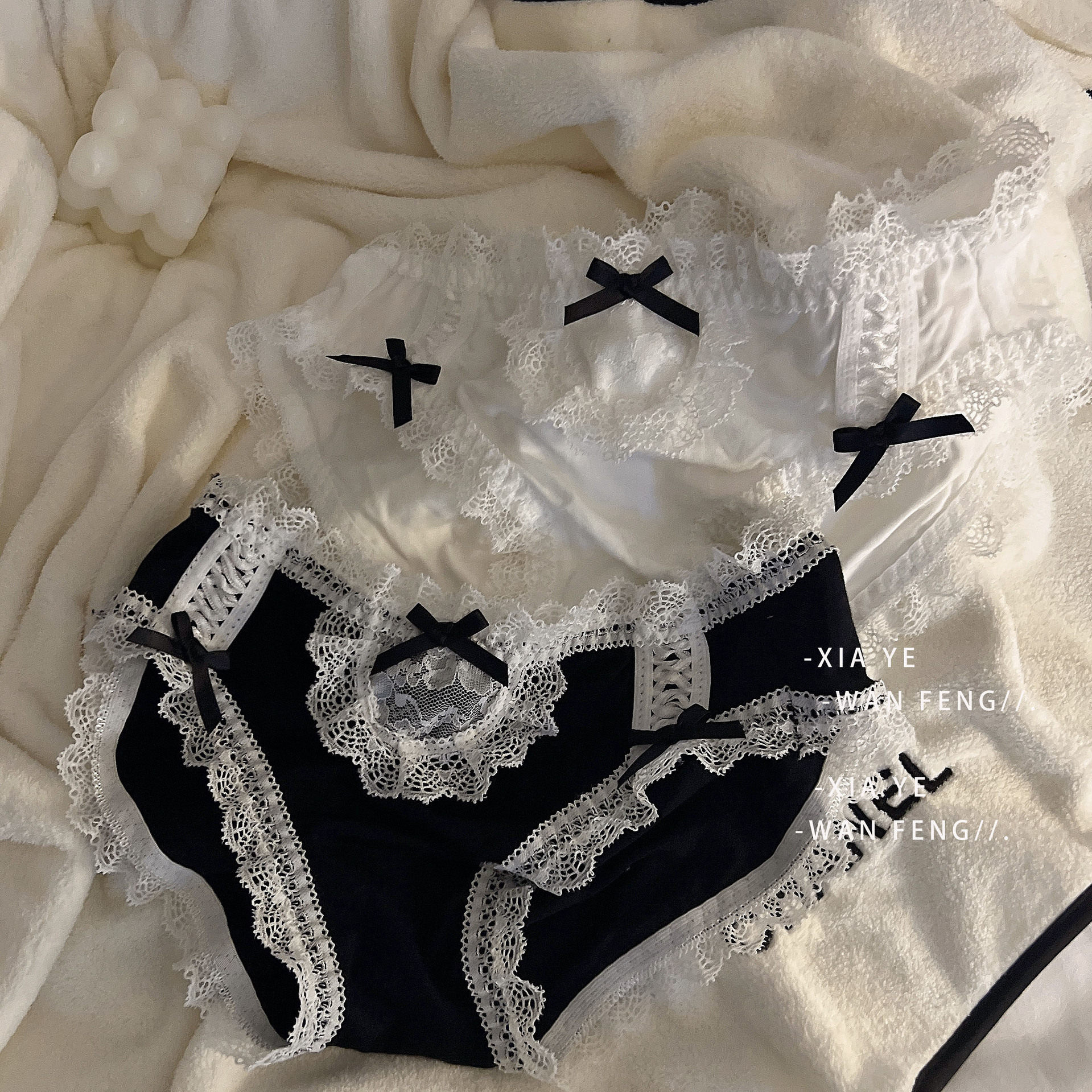 白茶的貓日系甜美鏤空蕾絲內褲女生純欲低腰蝴蝶結女僕三角褲