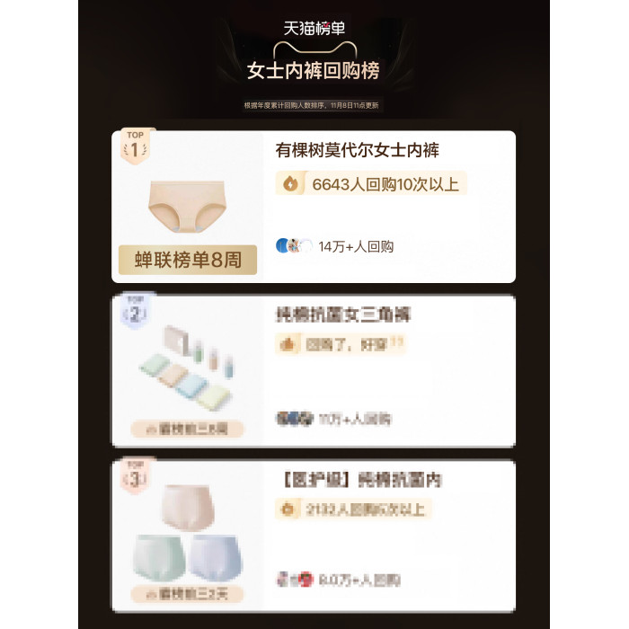 有棵樹莫代爾內褲女純棉全棉襠抗菌無痕透氣中高腰大碼紅色三角褲
