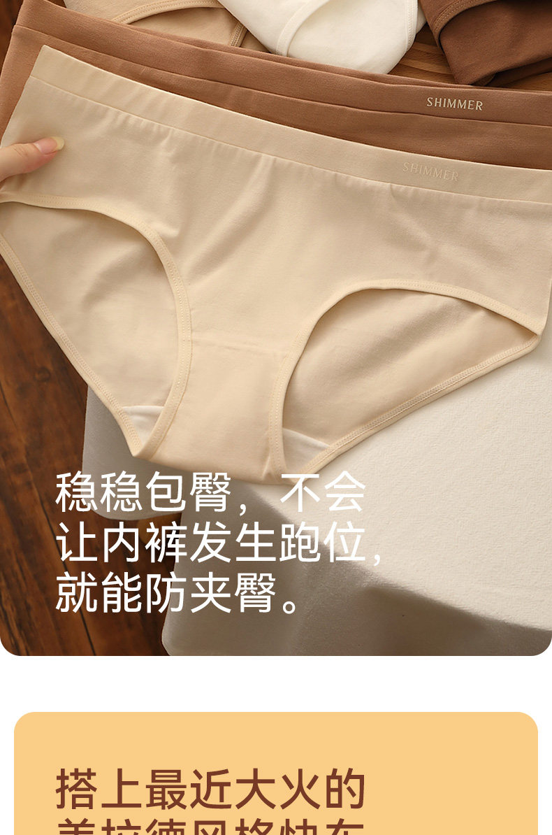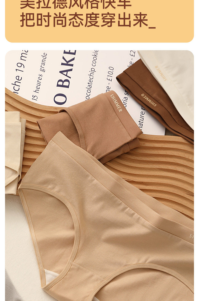 無痕內褲女生純棉100%全棉仰菌襠舒適中腰美拉德運動女士三角短褲