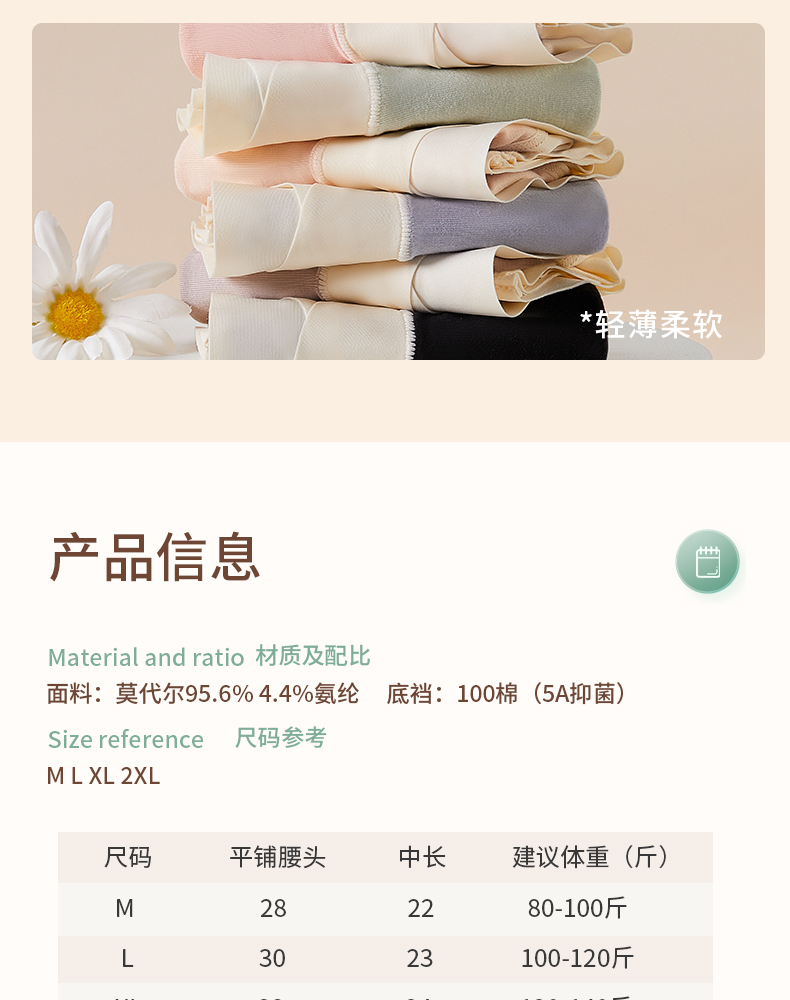 | 大身材質成分 | 莫代爾纖維(莫代爾)95.6% 聚氨酯彈性纖維(氨綸)4.4% |