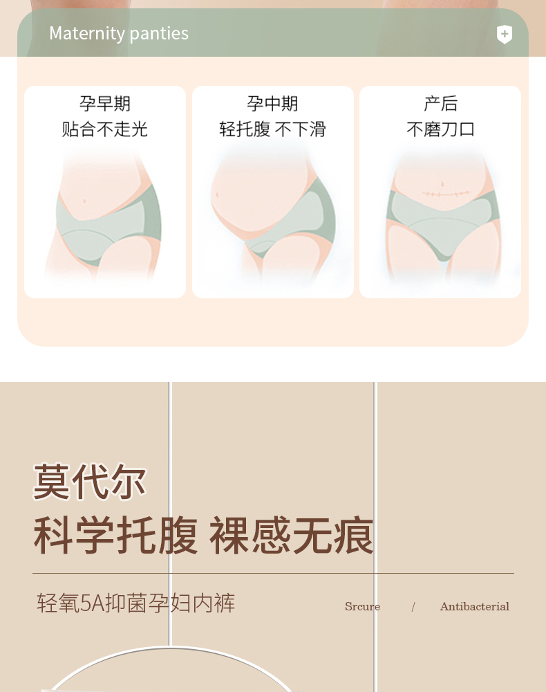 孕婦內褲純棉襠全棉抗菌孕後早中晚懷孕期專用低腰托腹莫代爾無痕