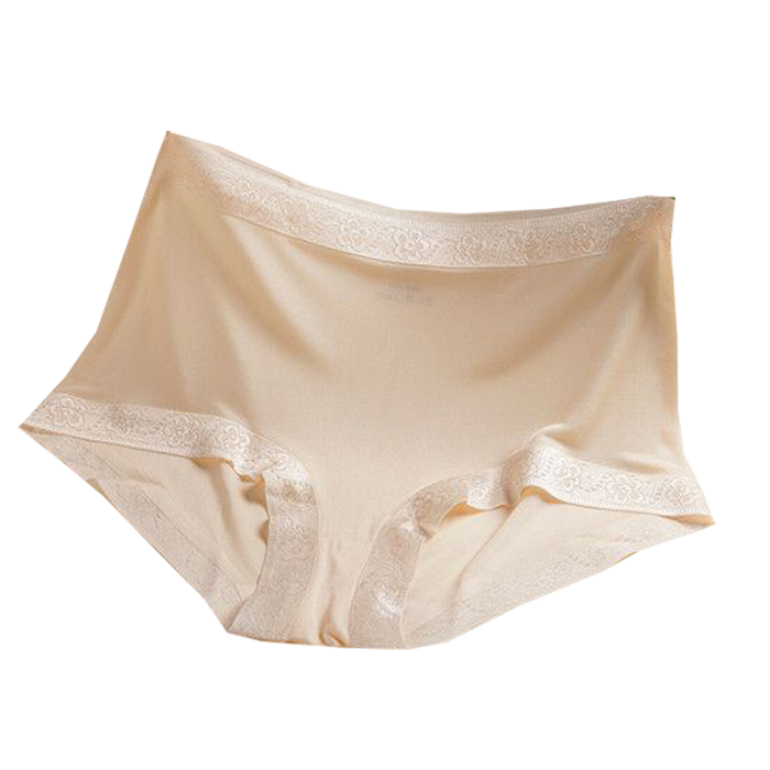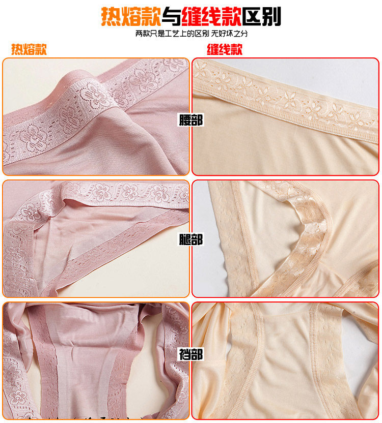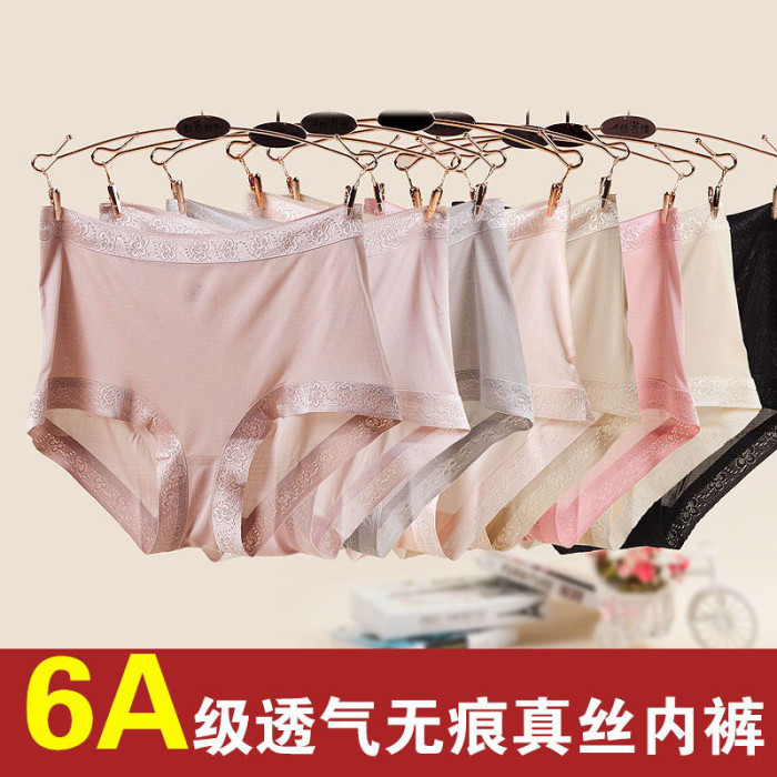 女真絲內褲一片式透氣舒適無痕速乾包臀中腰蕾絲桑蠶絲短褲夏薄款