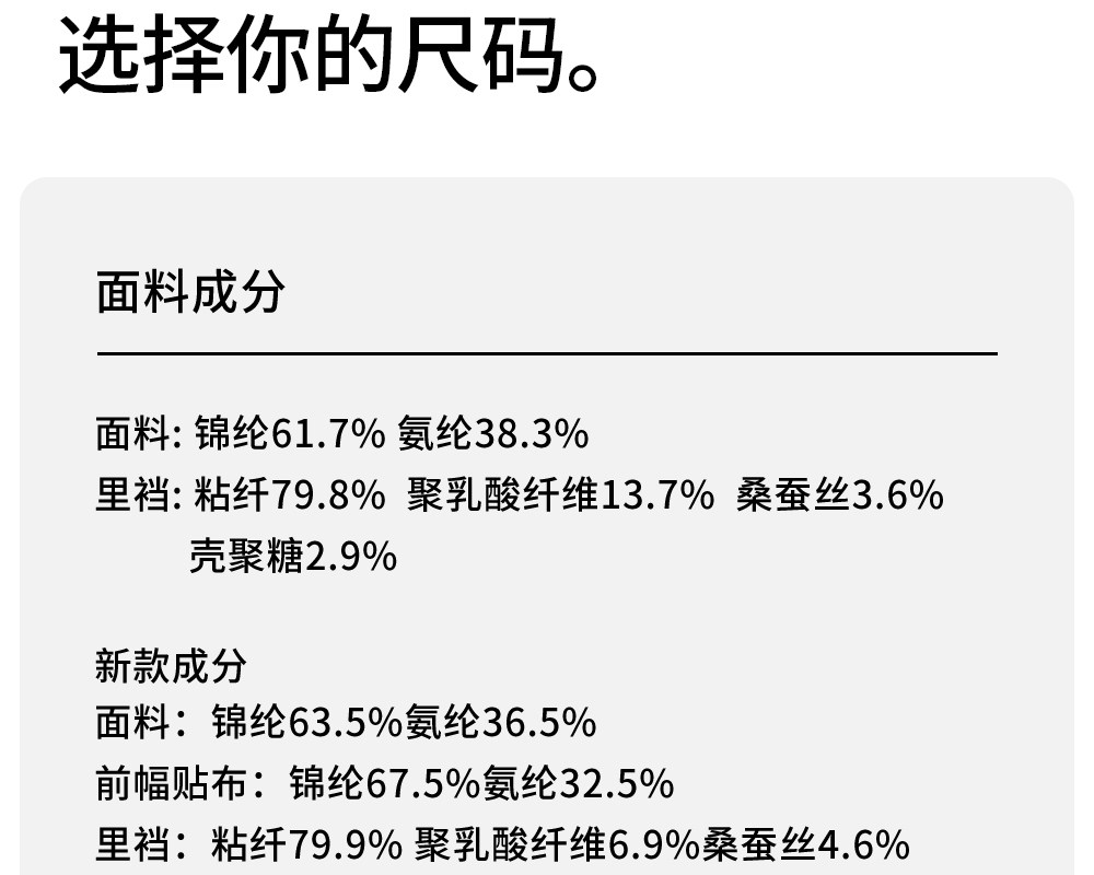 襠部材質成分 粘膠纖維(粘纖)79.8% 聚乳酸纖維(PLA)13.7% 桑蠶絲3.6% 其他2.9%