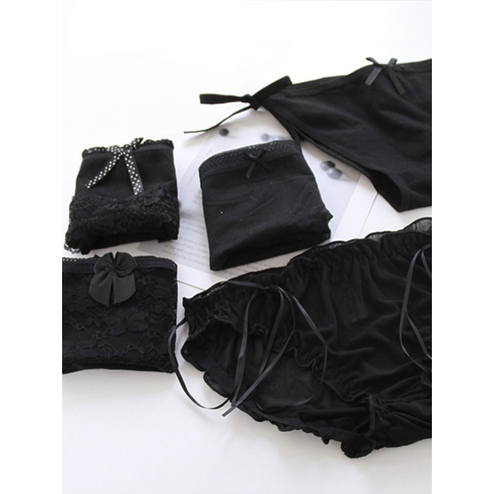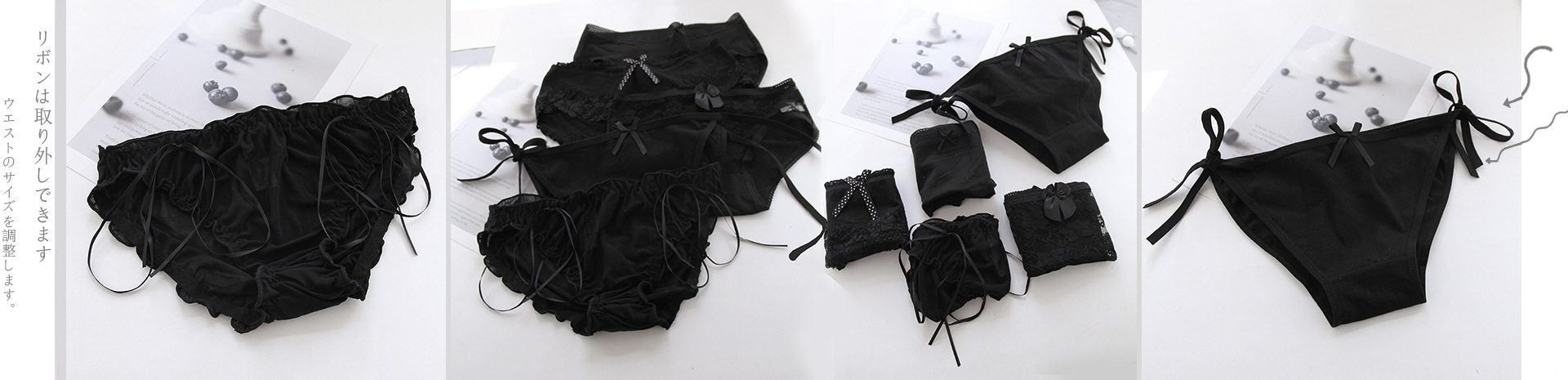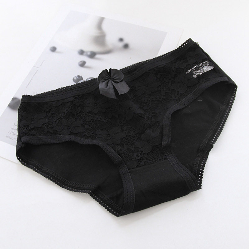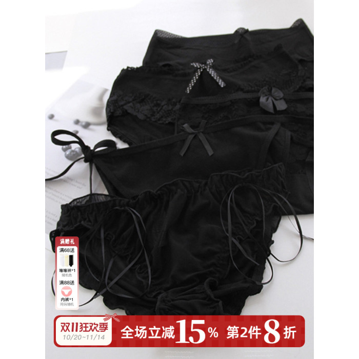 內褲女純棉抗抑菌黑色日系性感綁帶蕾絲透氣可愛中低腰三角內褲女