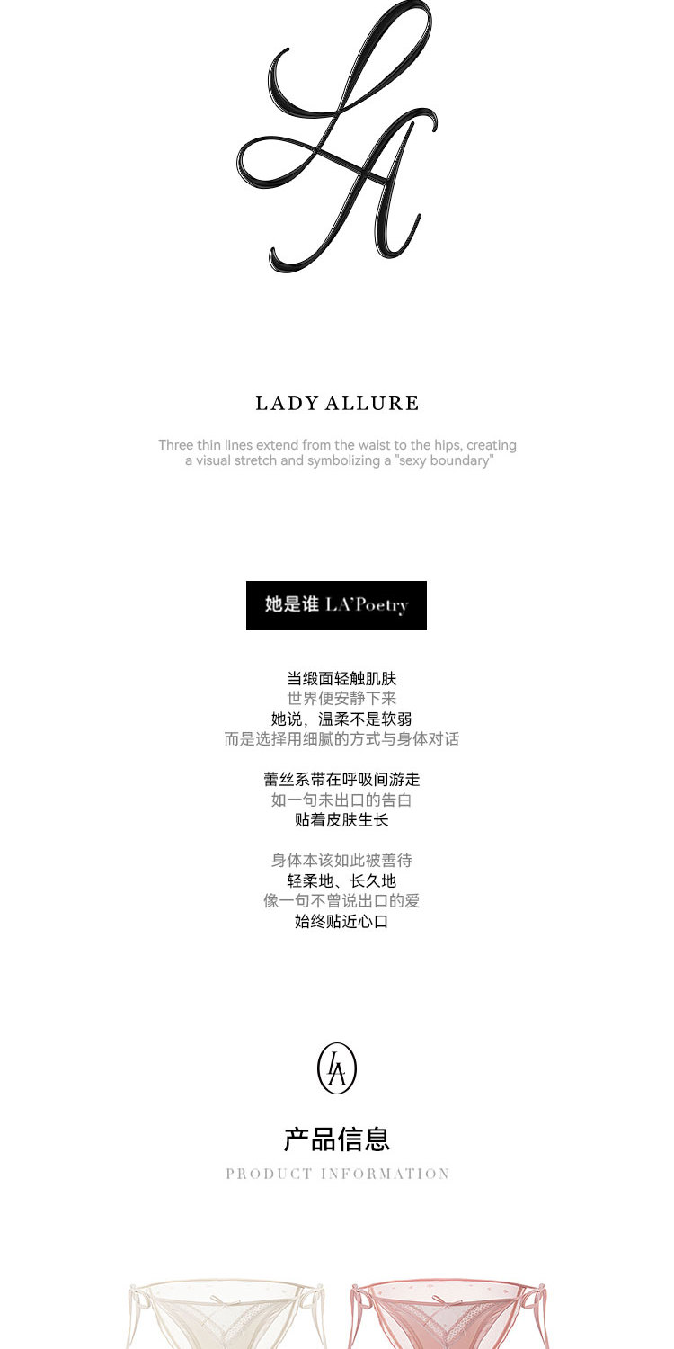 「LA」Ella·溫柔細語|靜感系列*溫婉性感緞面蕾絲系帶純欲女內褲