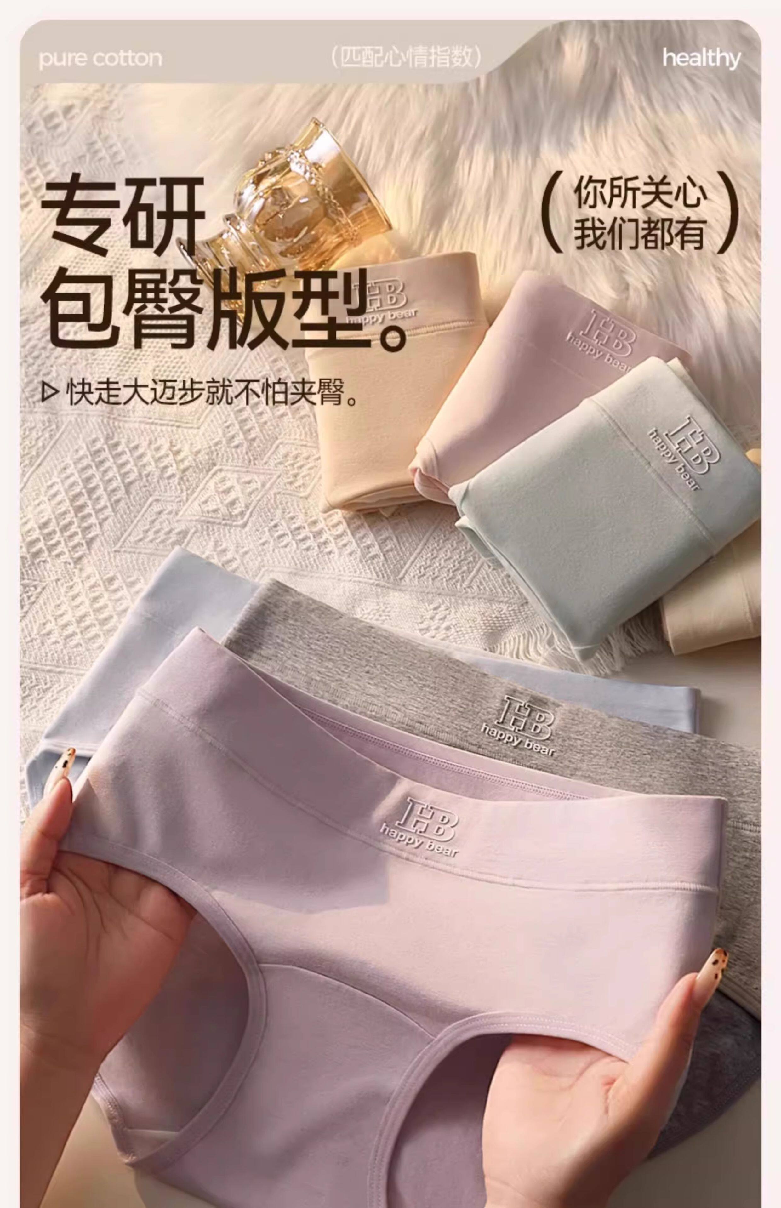 俞兆林內褲女士純棉10A級抗菌全棉加長襠中腰大碼女生三角短褲頭