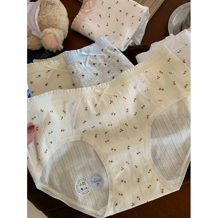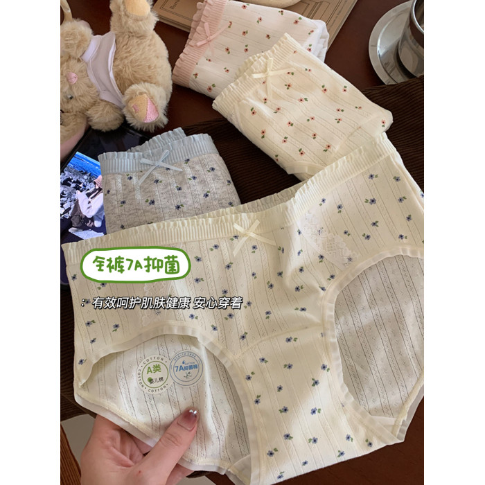 純欲內褲女士7A抑菌純棉加長襠碎花中腰無痕A類嬰兒棉女生三角褲