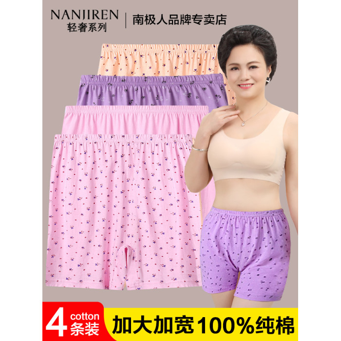 南極人媽媽內褲女士純棉平角高腰加肥加大碼中老年奶奶四角短褲頭