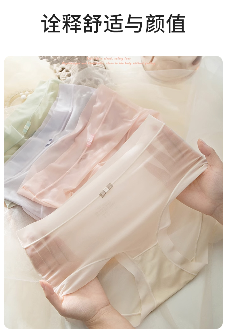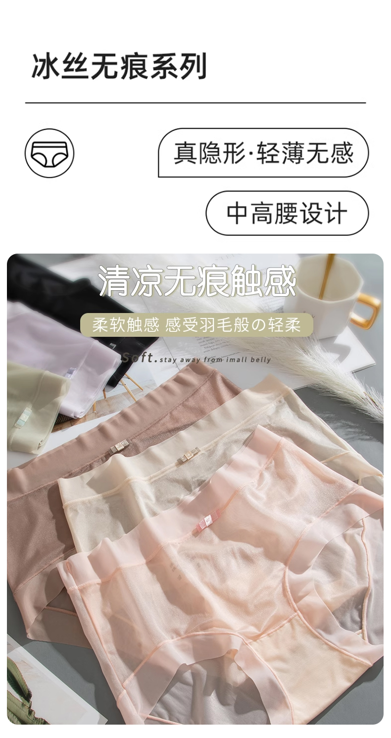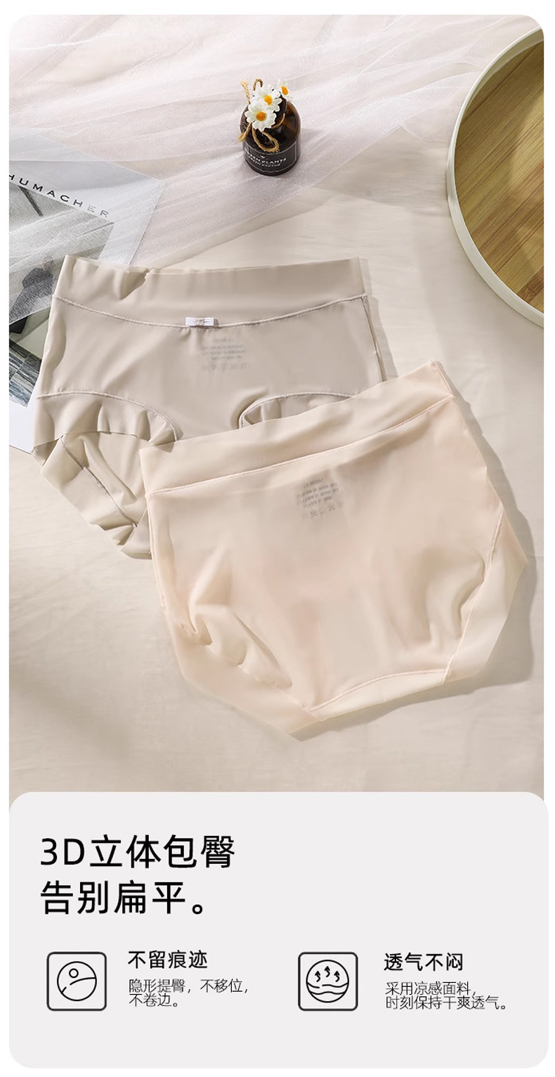 女士內褲夏季超薄冰絲大碼胖mm無痕裸感面膜褲中腰三角短褲大彈力