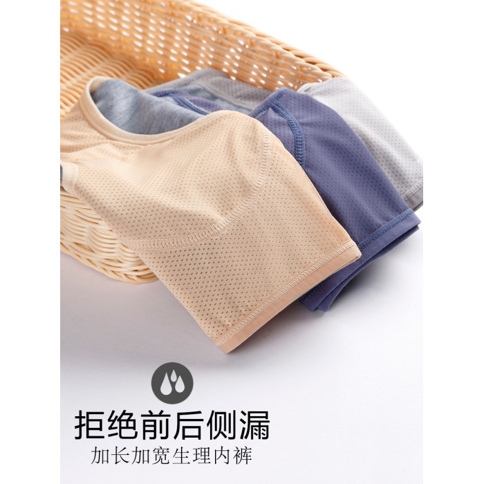 冰絲生理褲鏤空透氣月經期內褲女前後防漏加大碼姨媽三角衛生褲