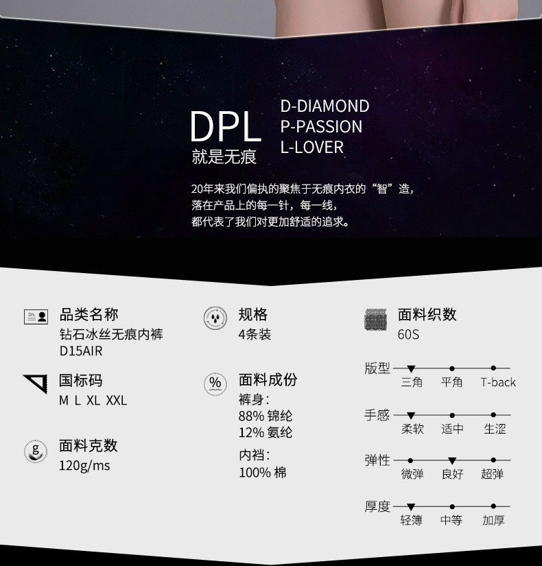 DPL冰絲無痕女士內褲純棉襠三角中腰抗菌黑色夏薄性感透氣白色