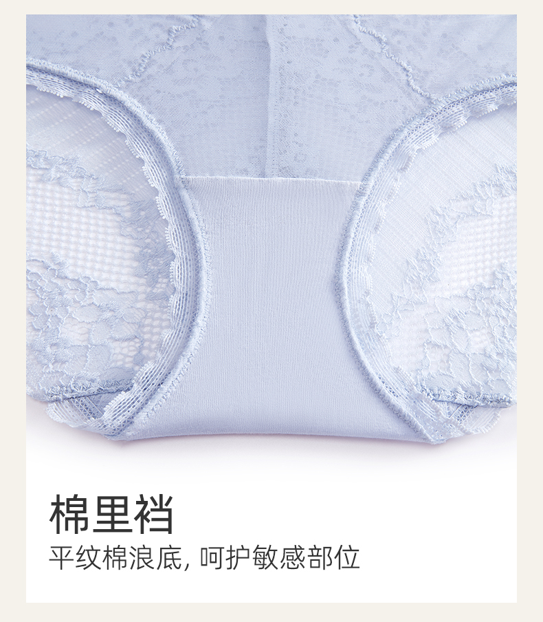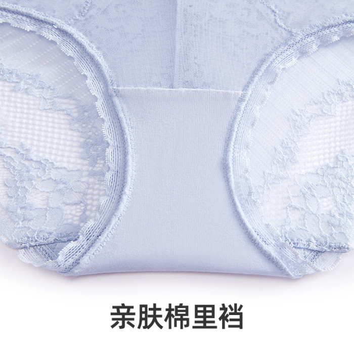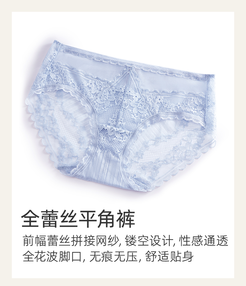 HSIA遐全蕾絲中腰平角褲鏤空性感蕾絲親膚透氣純棉襠底薄款內褲女