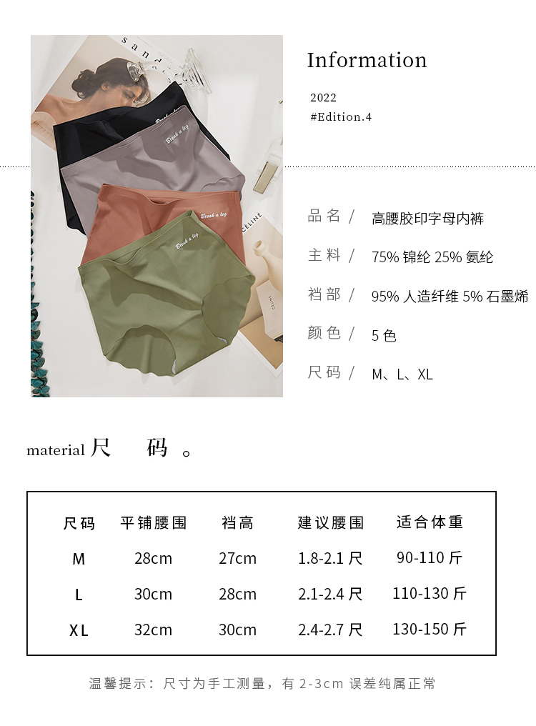4條 中高腰無痕運動內褲女士冰絲夏季新款健身跑步性感透氣大碼