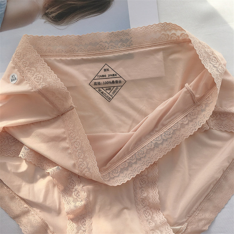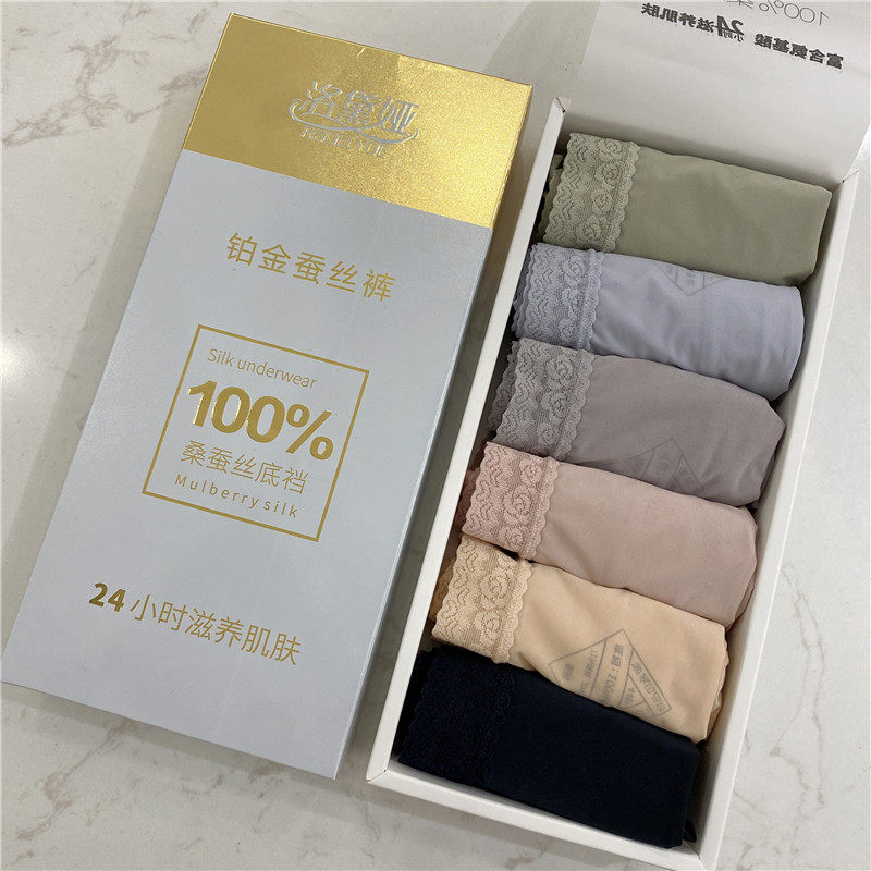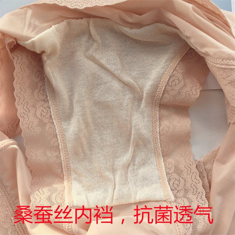 鉑金蠶絲內褲女冰絲款透氣中高腰無痕抗菌100%桑蠶絲內襠三角褲頭