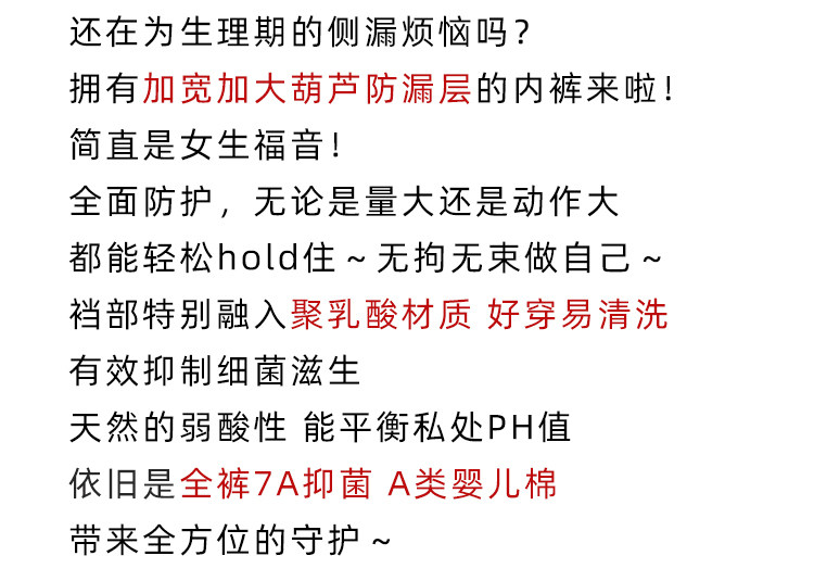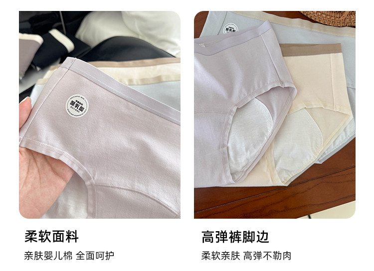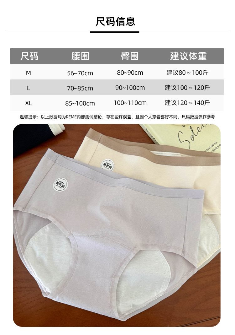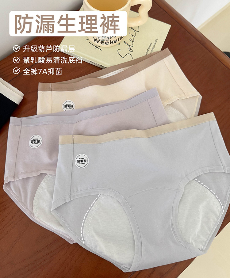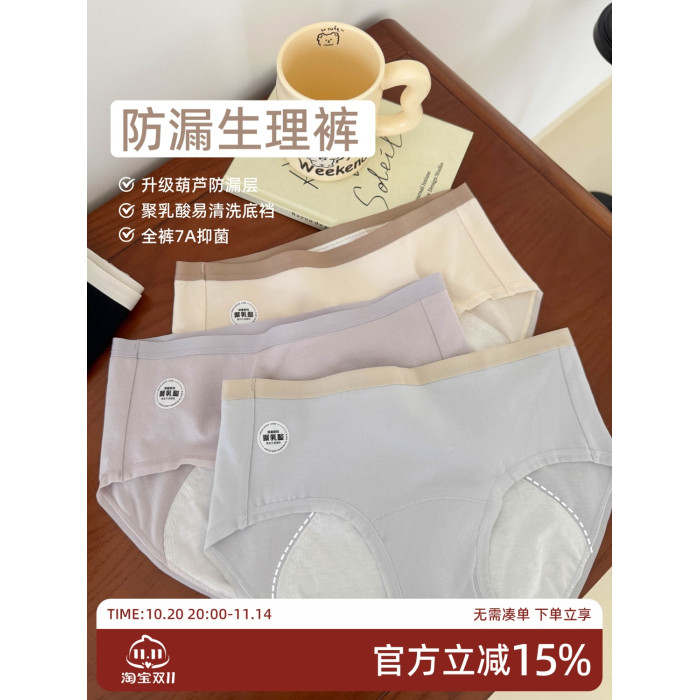 月經期生理褲防漏女士內褲女生純棉姨媽褲加長襠少女抗菌三角短褲