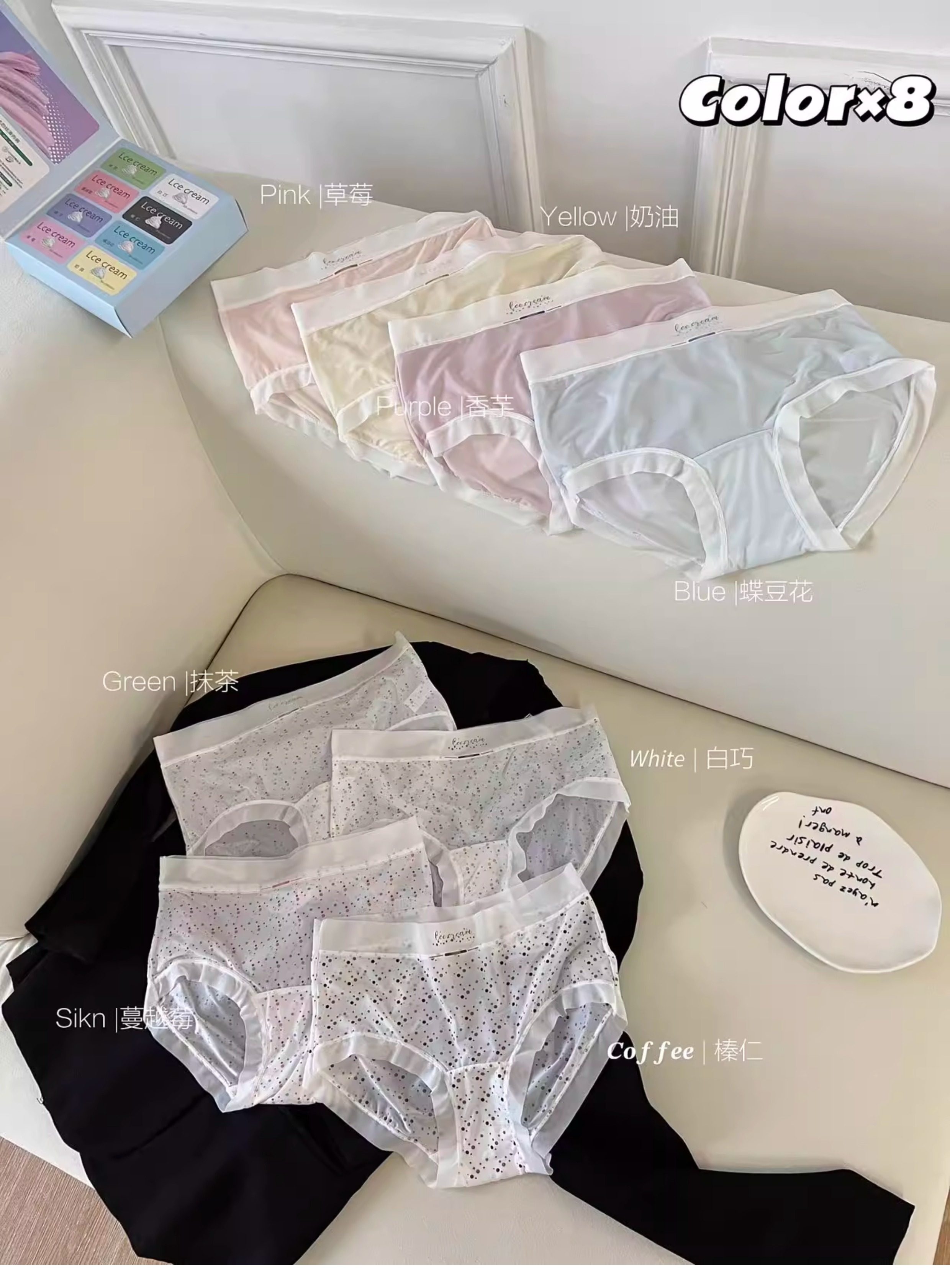 8條盒裝性感印花超薄裸感純欲簡約女士內褲抑菌透氣女生三角內褲