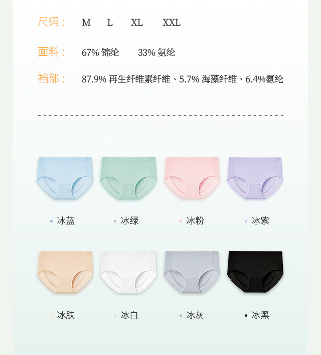 | 襠部材質成分 | 再生纖維素纖維87.9% 聚氨酯彈性纖維(氨綸)6.4% 海藻纖維5.7% |
