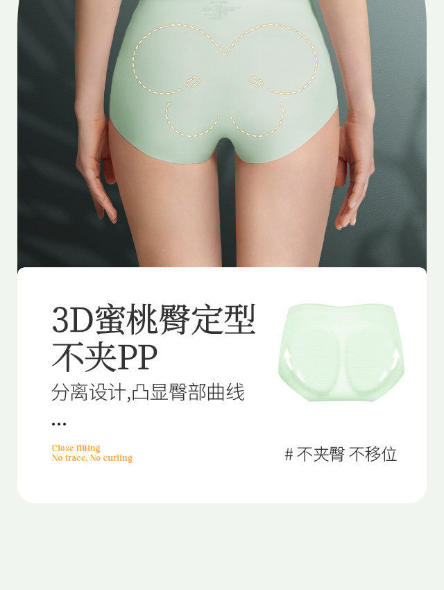 浪莎冰絲無痕內褲女士夏季薄款女生高腰提臀中腰內褲抗菌三角短褲