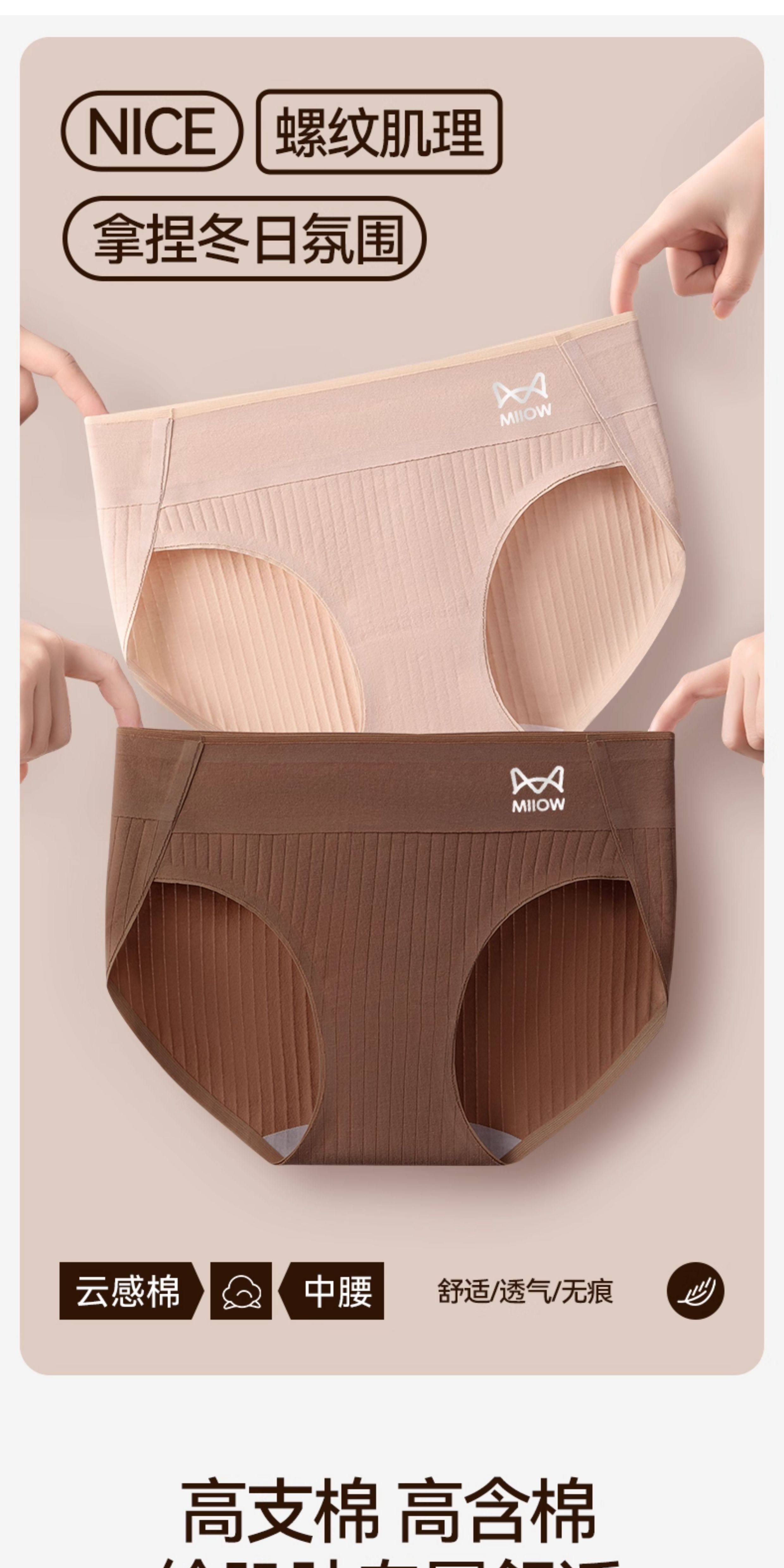 貓人純棉內褲女士純棉全棉襠2025新款高彈透氣無痕女生中腰三角褲