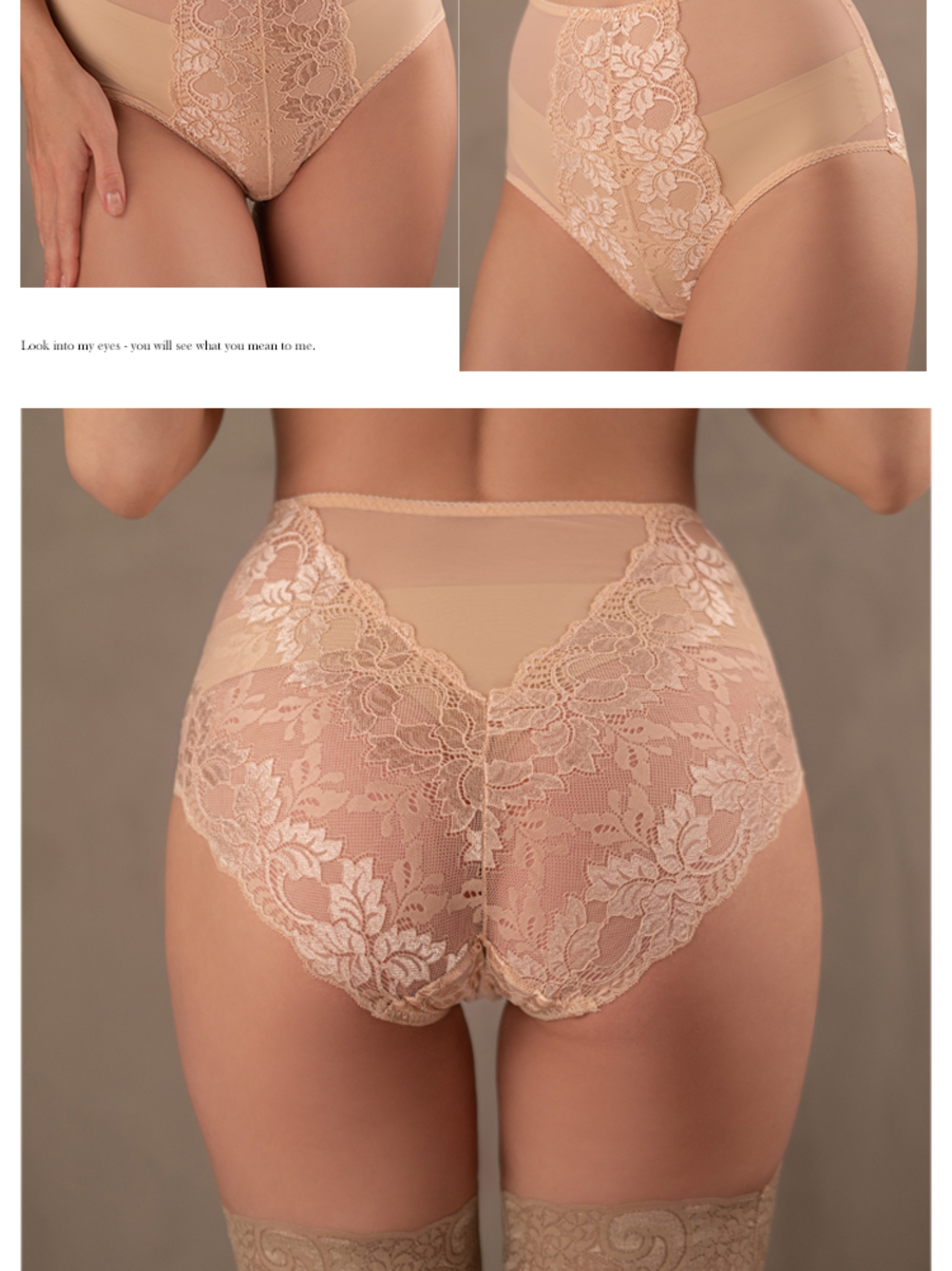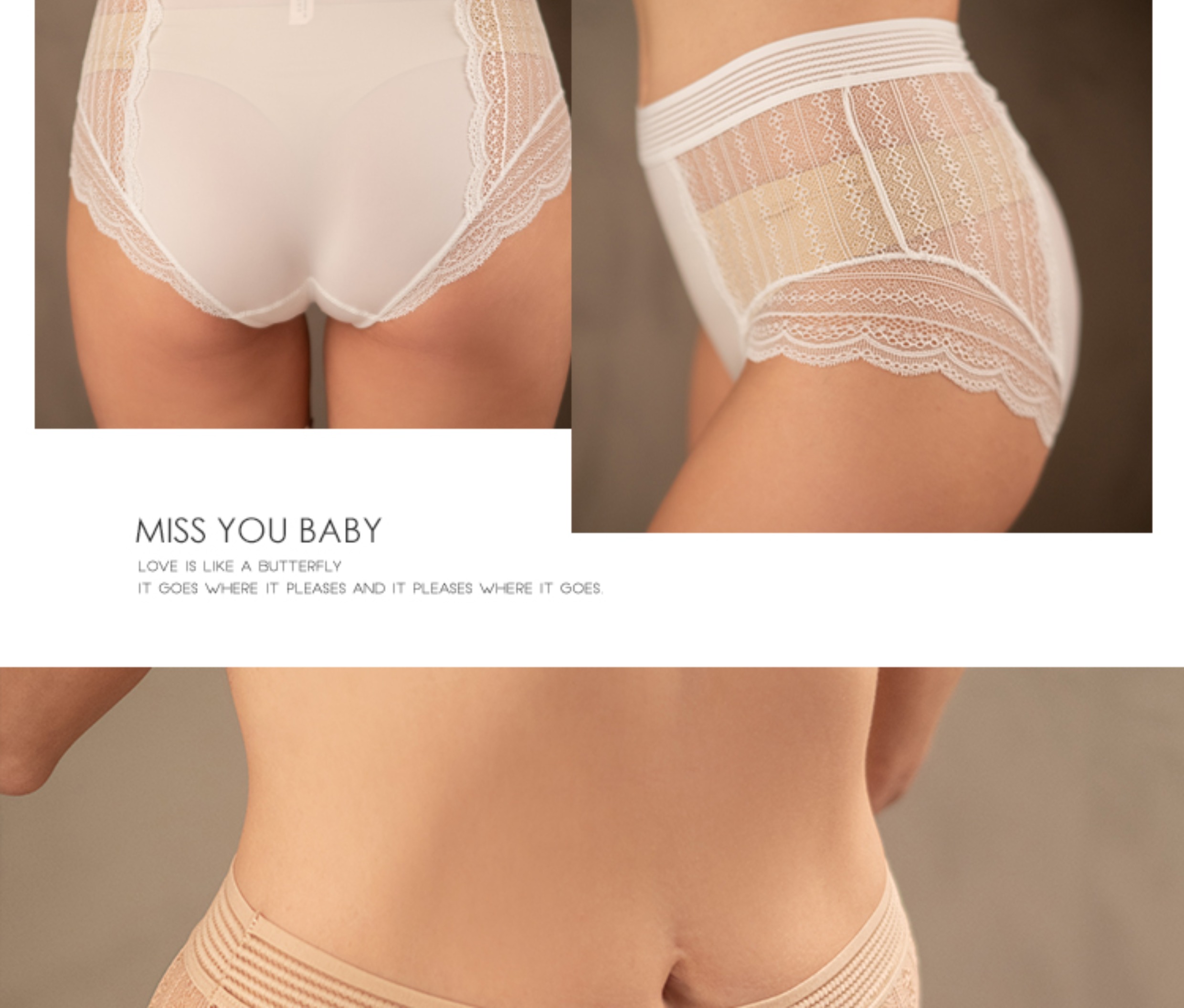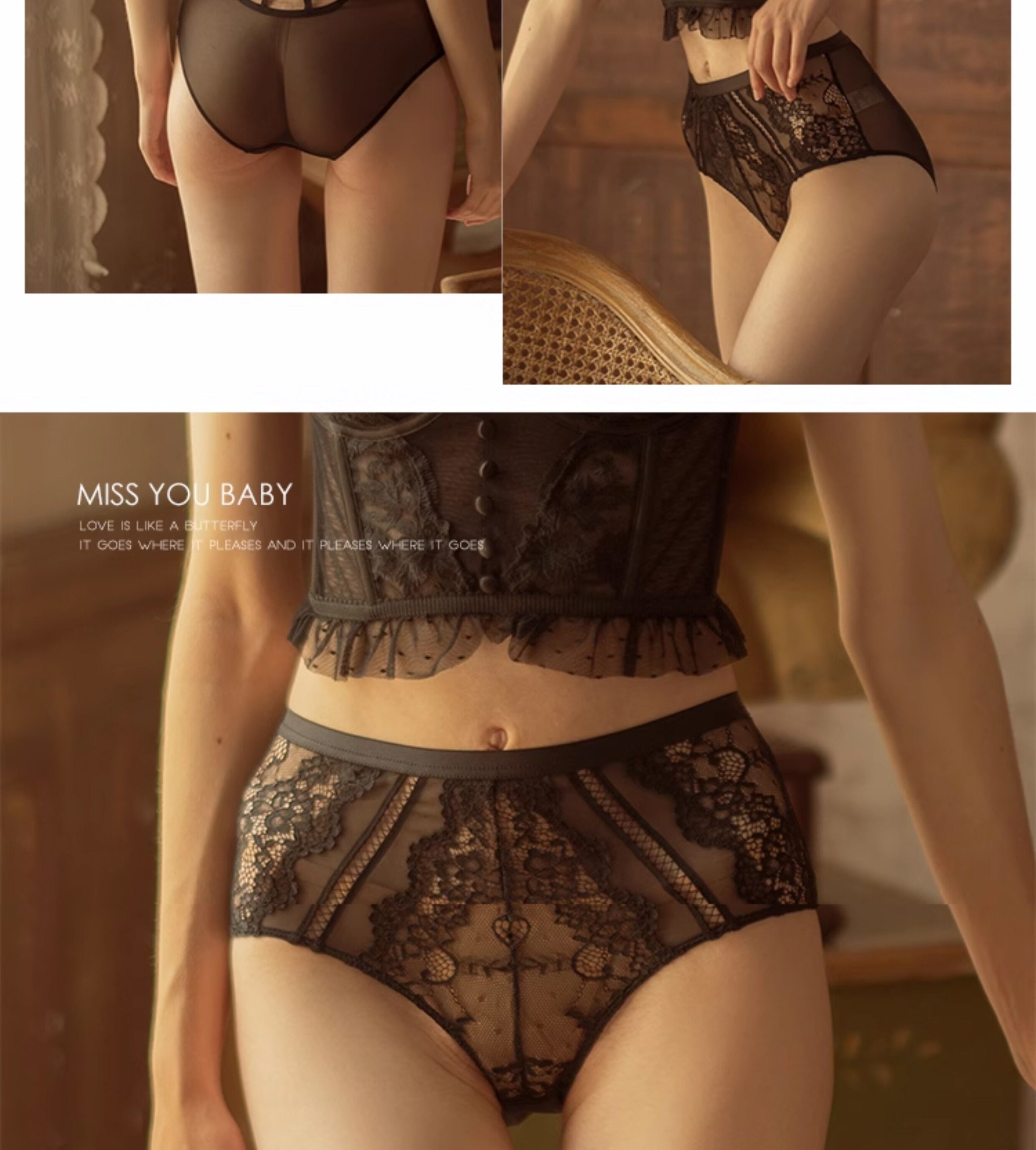 MIU Baby法式復古風高腰內褲性感半透蕾絲無痕包臀提臀底褲有大碼