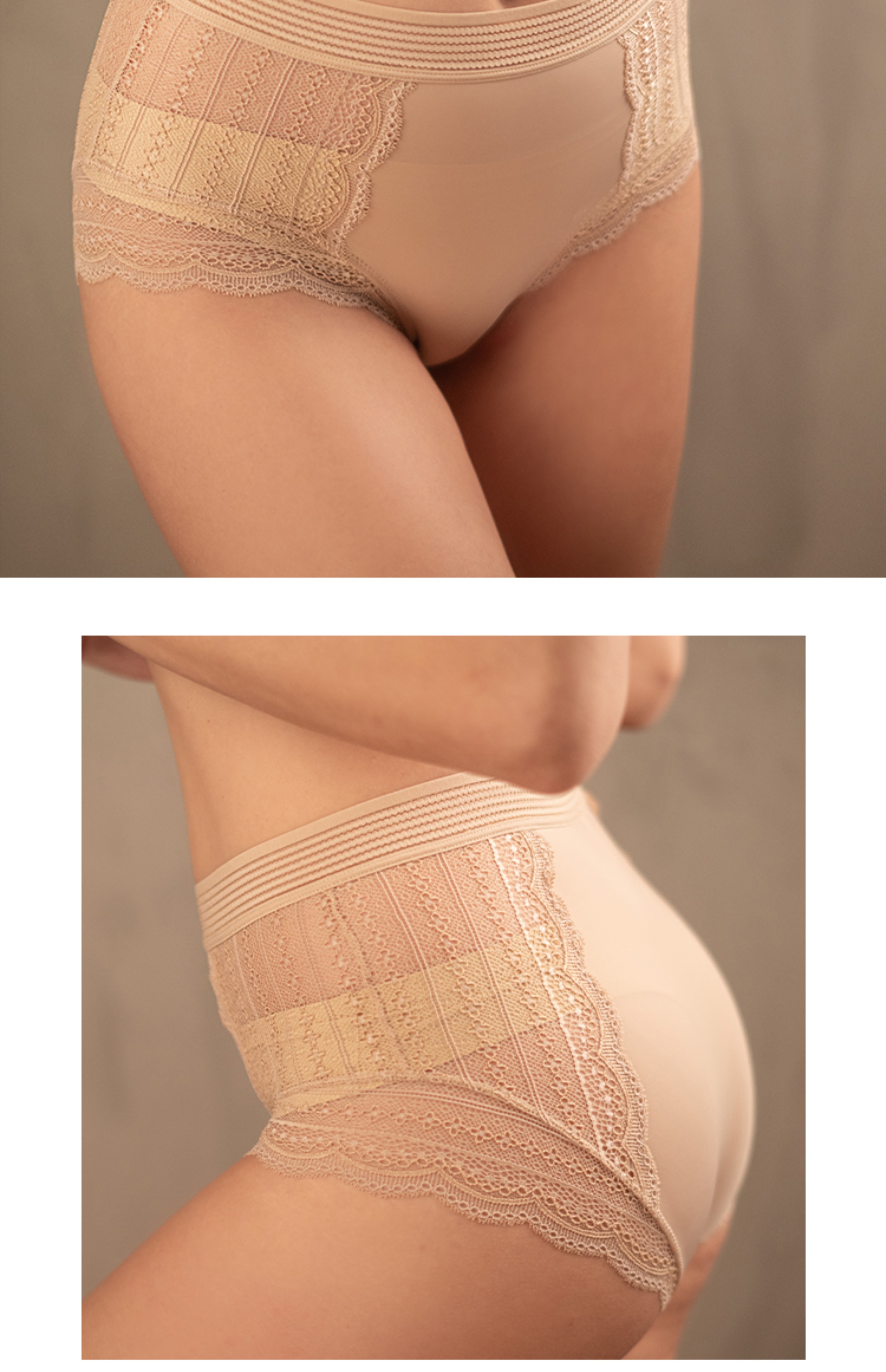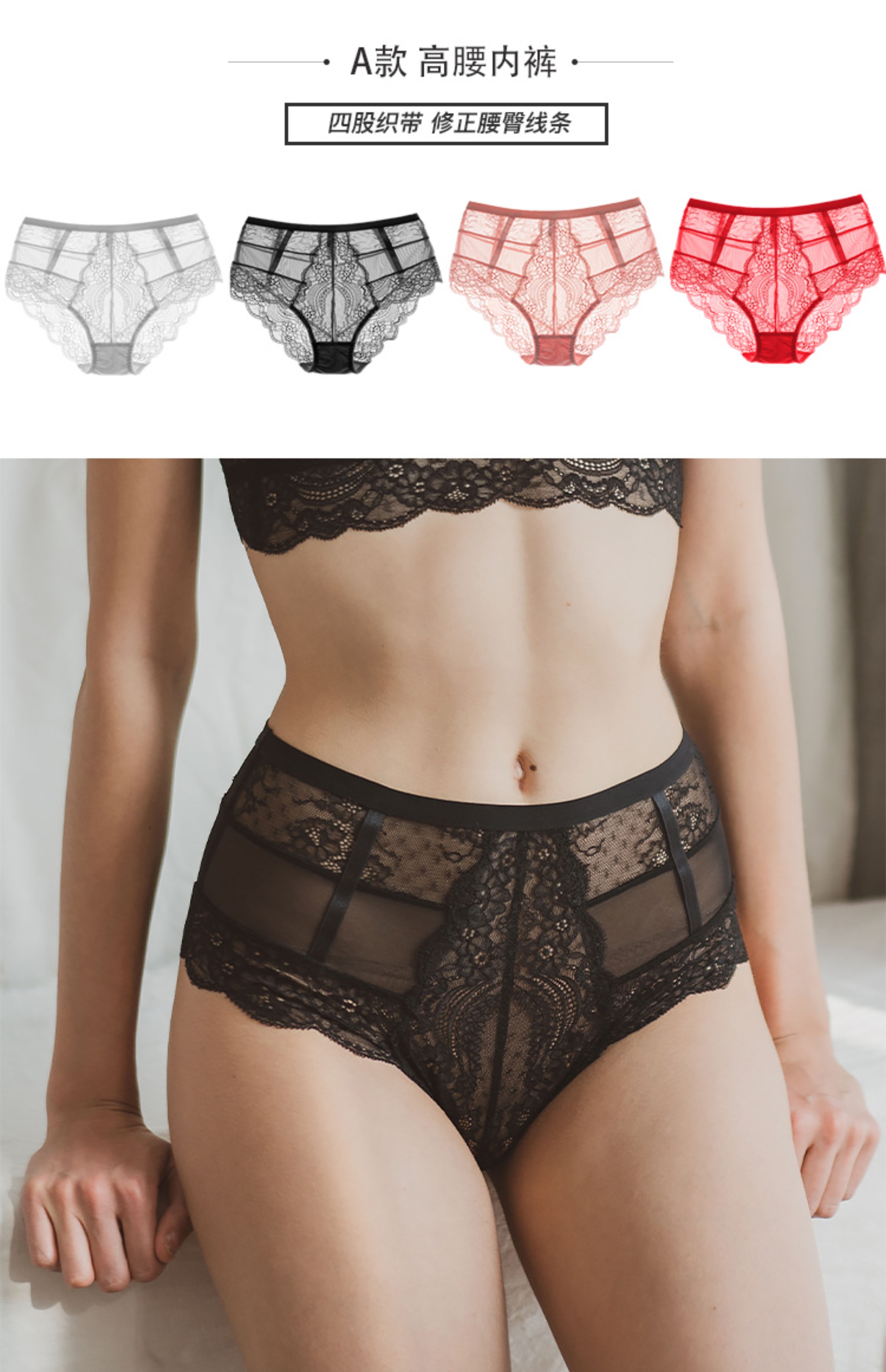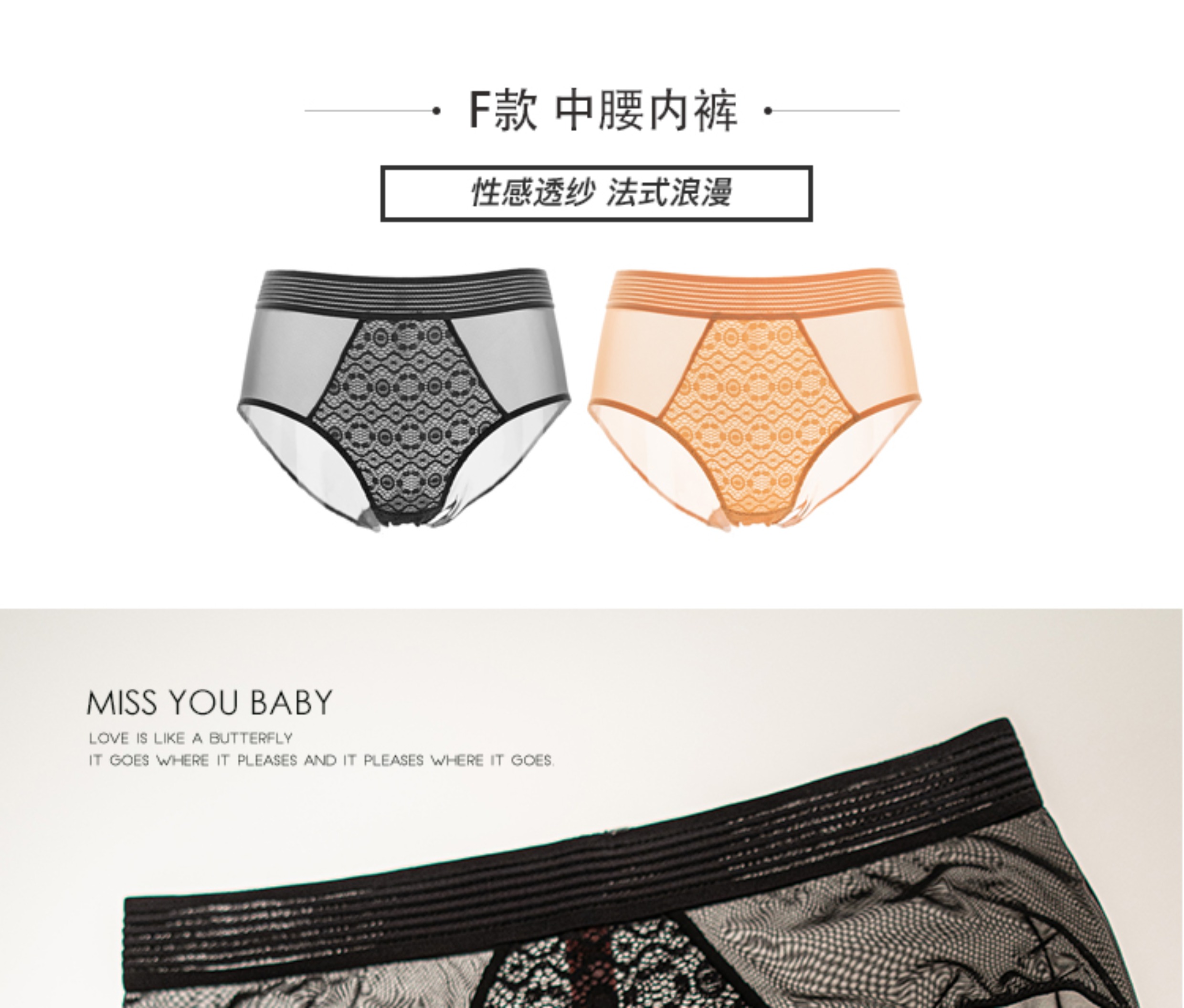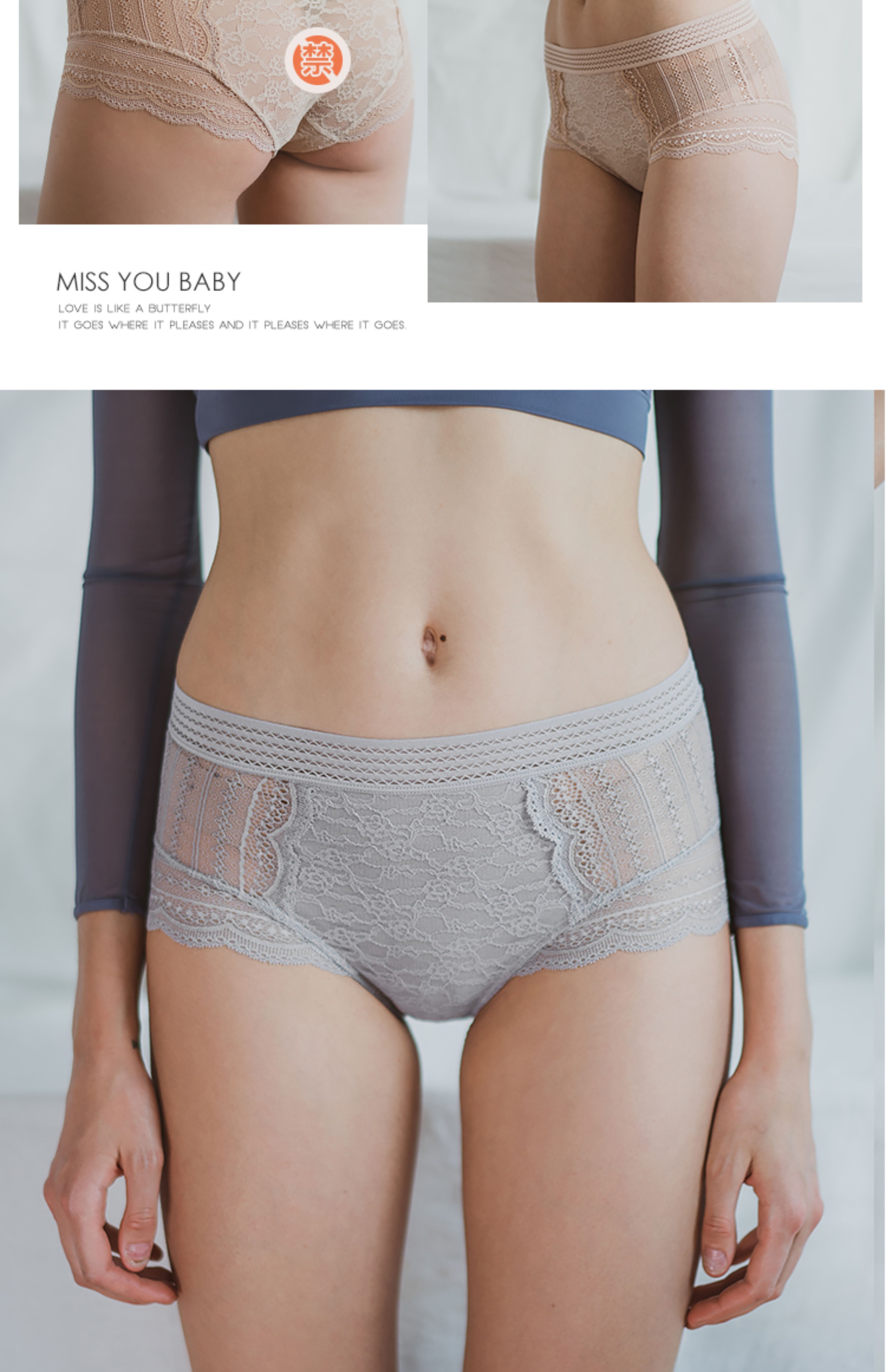 MIU Baby法式復古風高腰內褲性感半透蕾絲無痕包臀提臀底褲有大碼