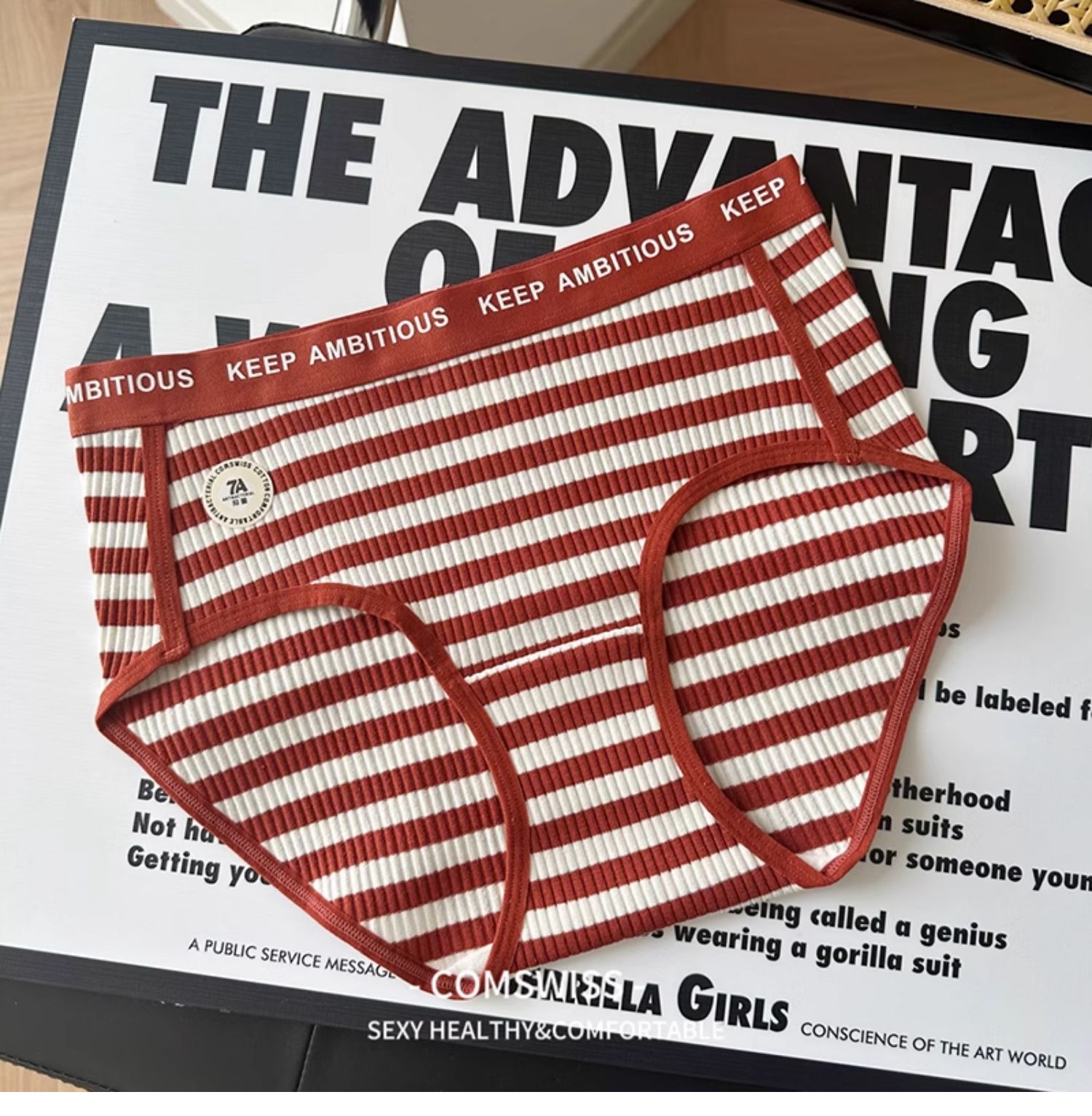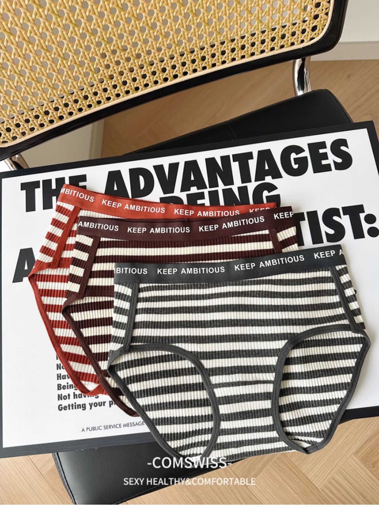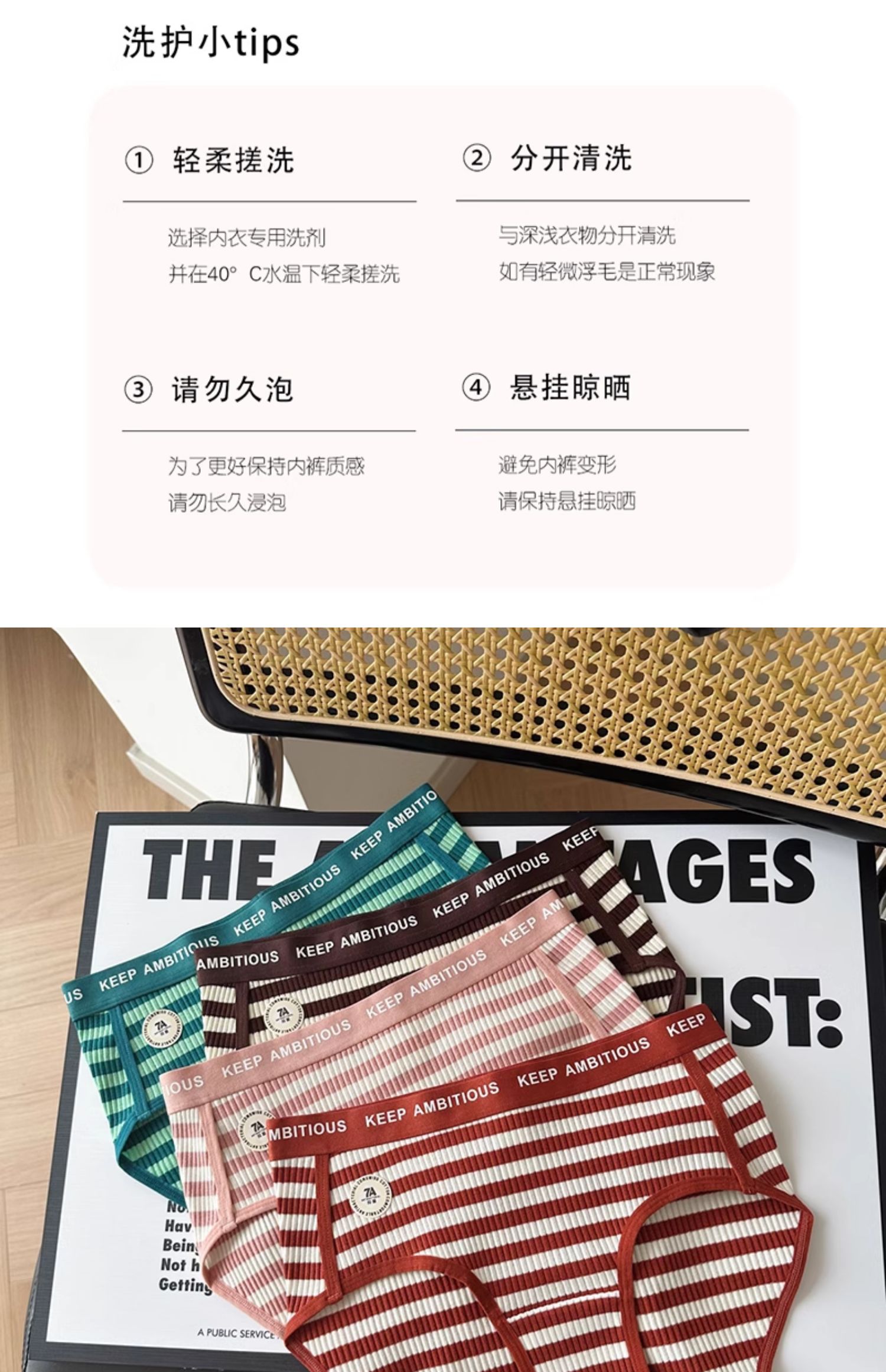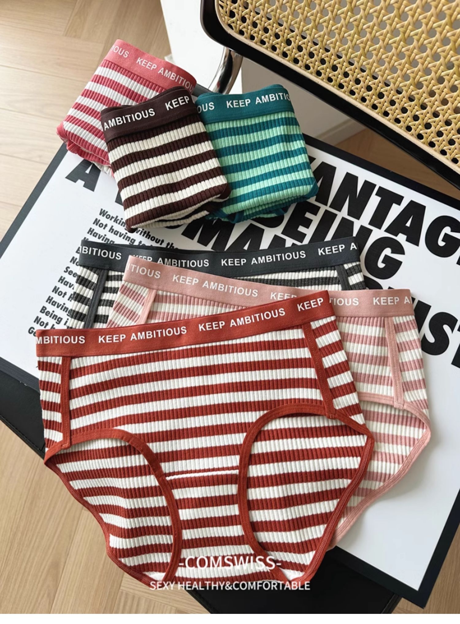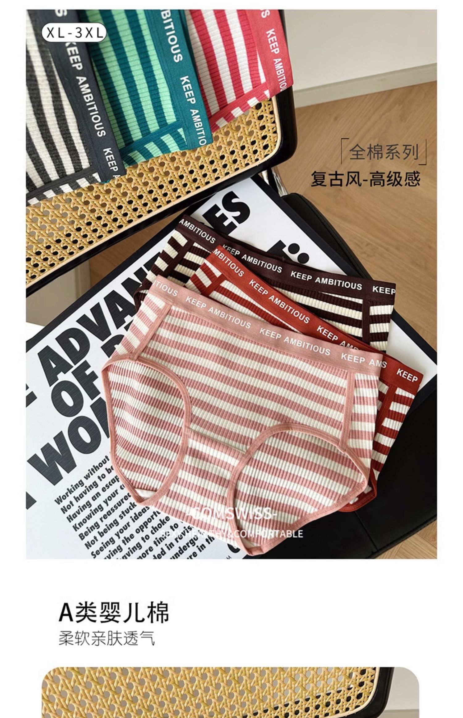 A類嬰兒棉女士內褲復古條紋控全褲7A抑菌撞色大碼200斤胖MM三角褲