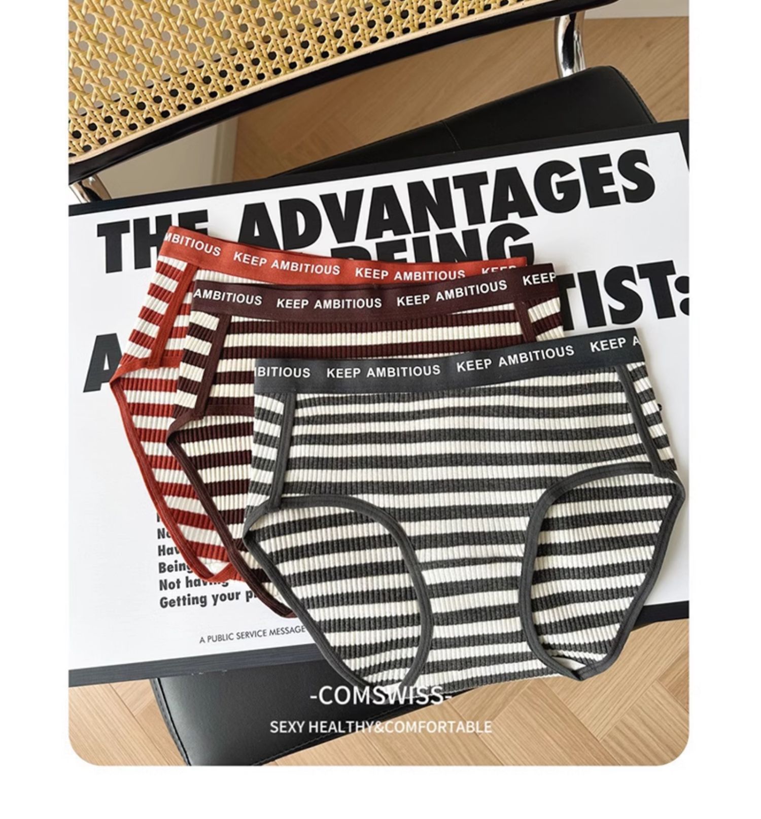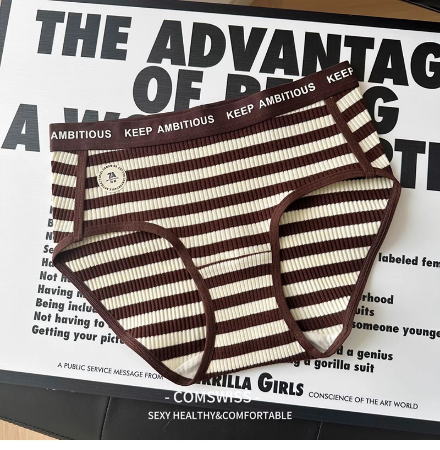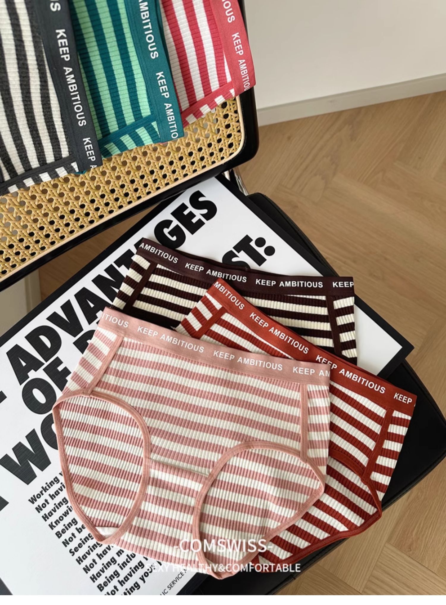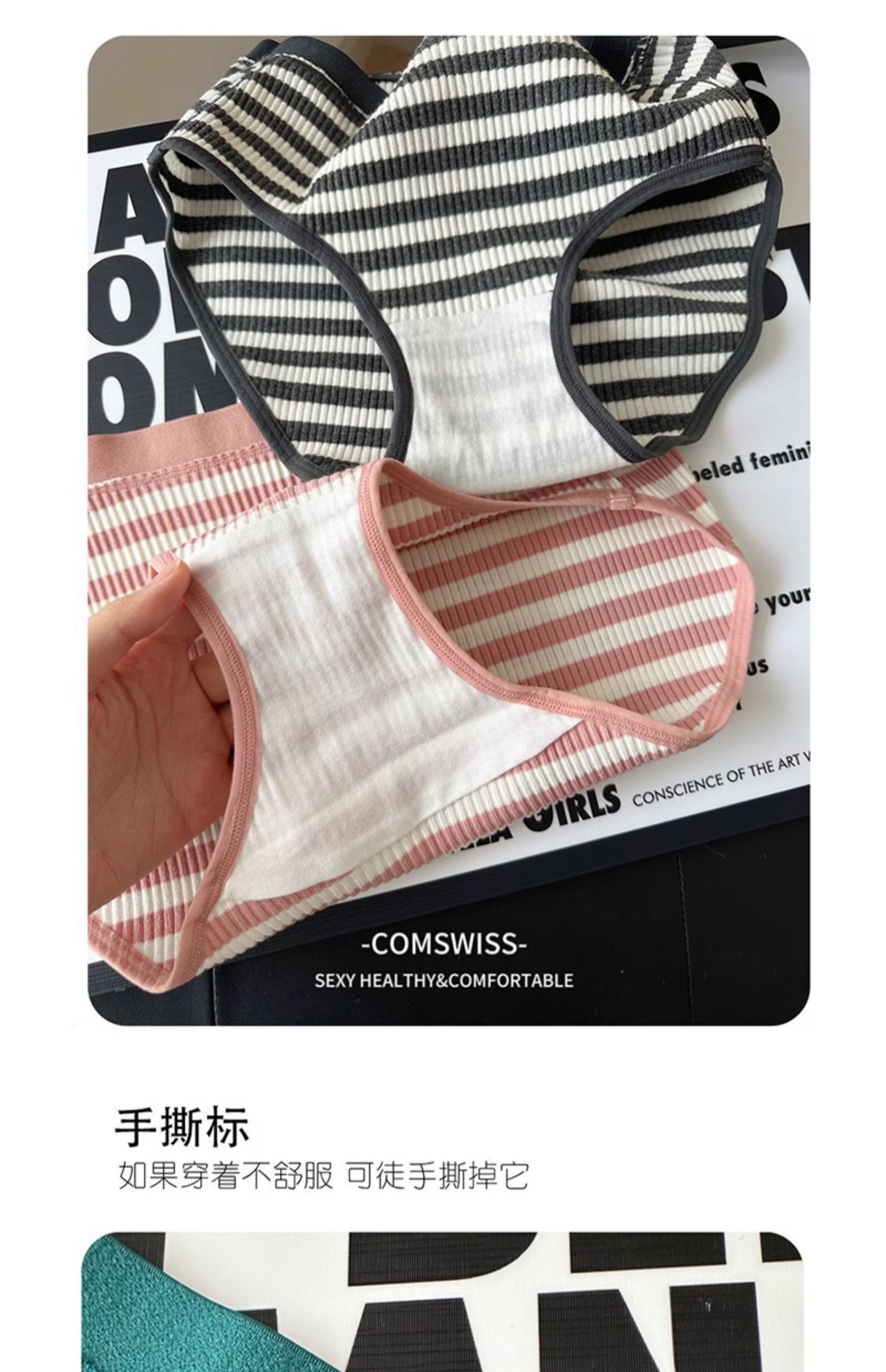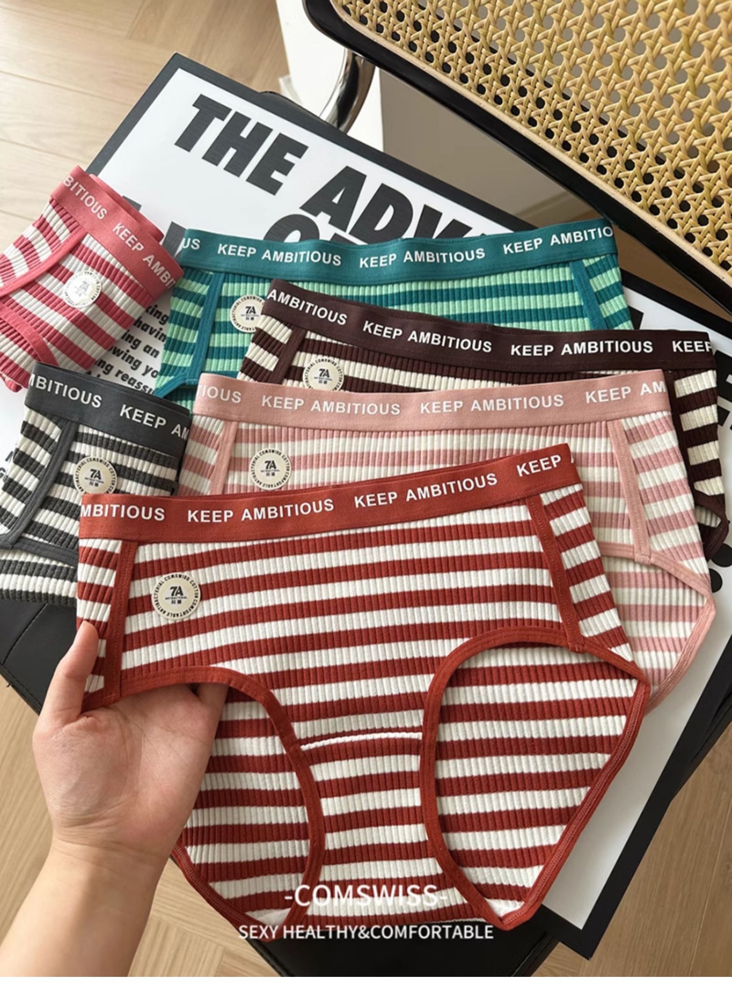A類嬰兒棉女士內褲復古條紋控全褲7A抑菌撞色大碼200斤胖MM三角褲