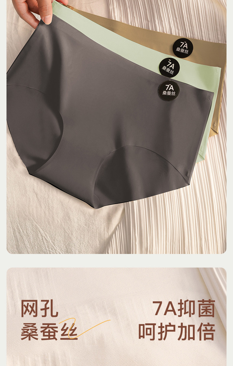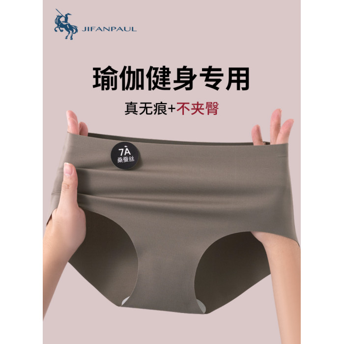 無痕內褲女士桑蠶絲抗菌不夾臀女生夏季冰絲薄款瑜珈運動三角短褲