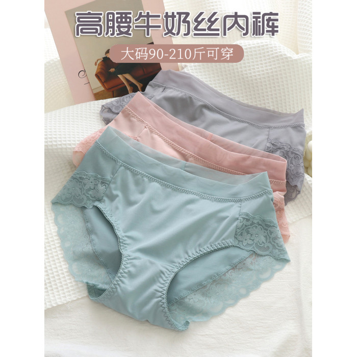 加大碼內褲女200斤 胖mm收腹無痕牛奶絲蕾絲透氣高腰包臀舒適薄款