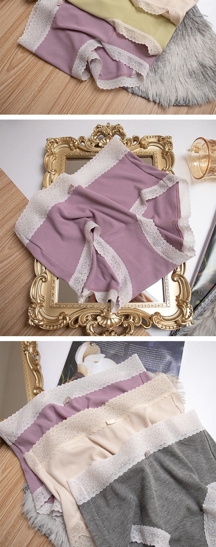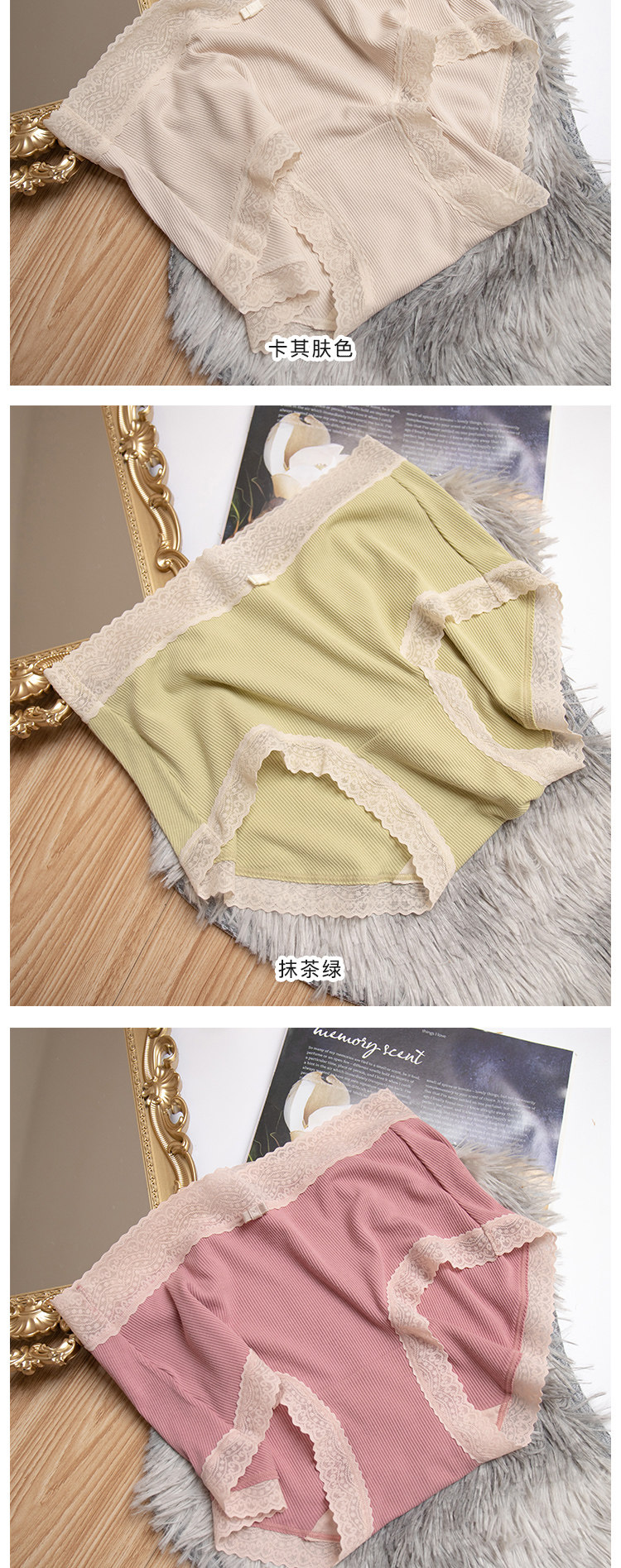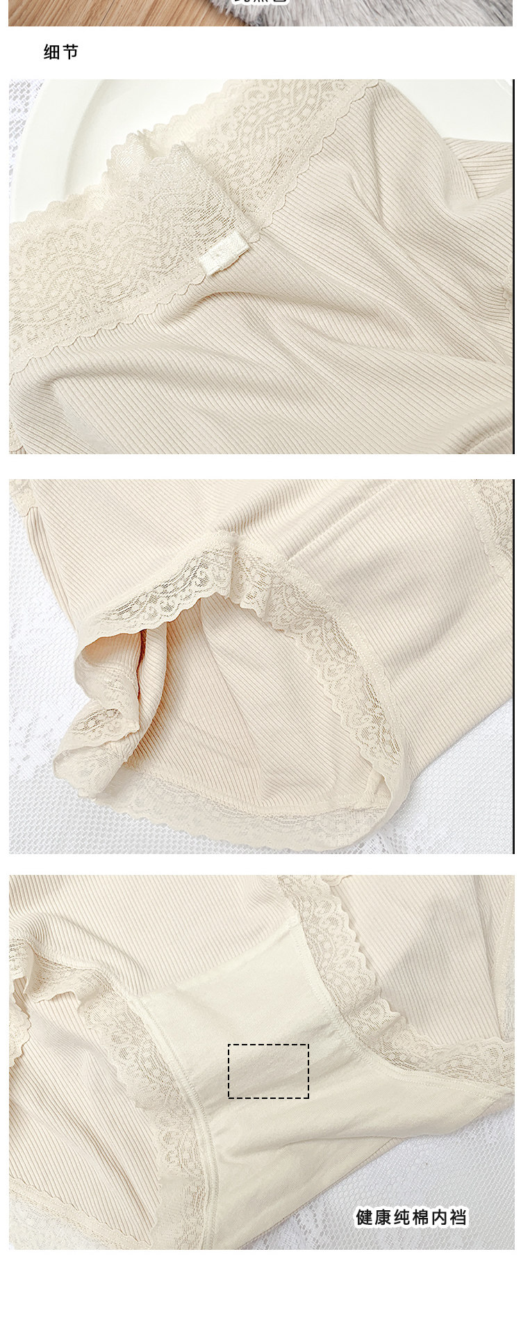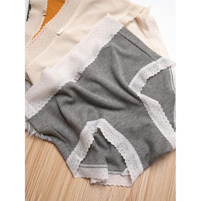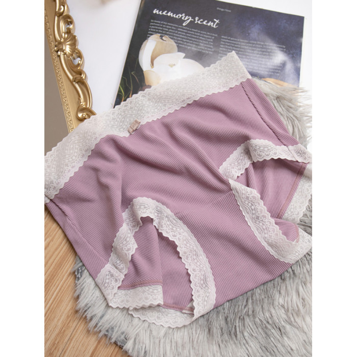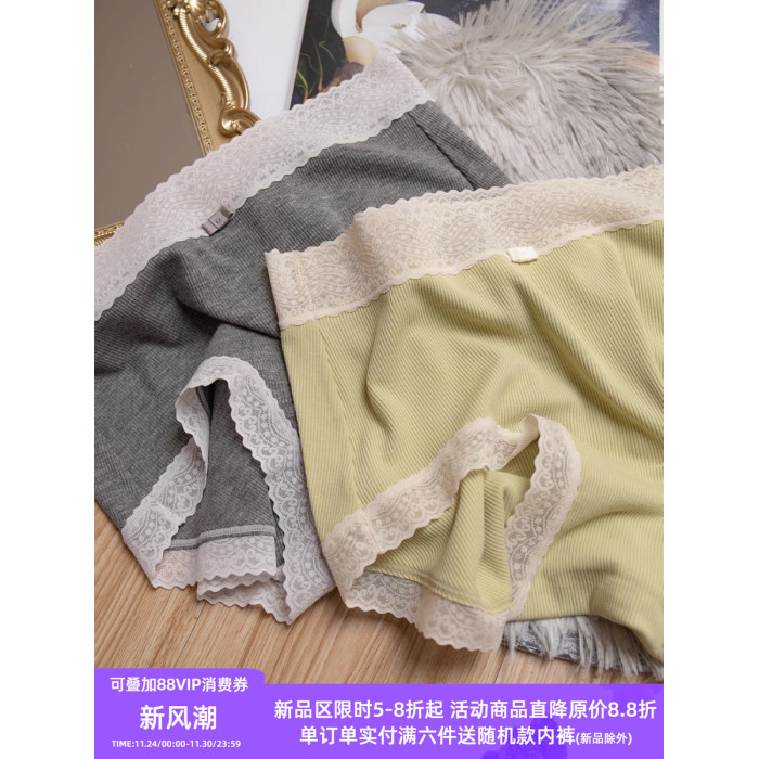 桃醬少女丨親膚柔軟 舒適螺紋蕾絲邊中腰無痕日系溫柔包臀內褲女