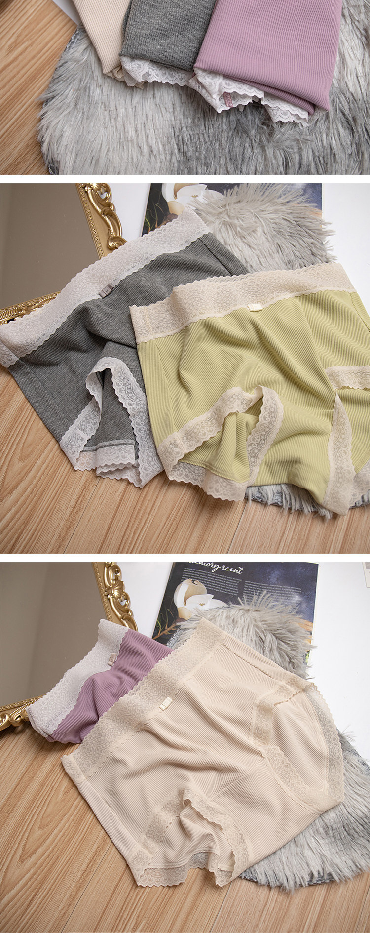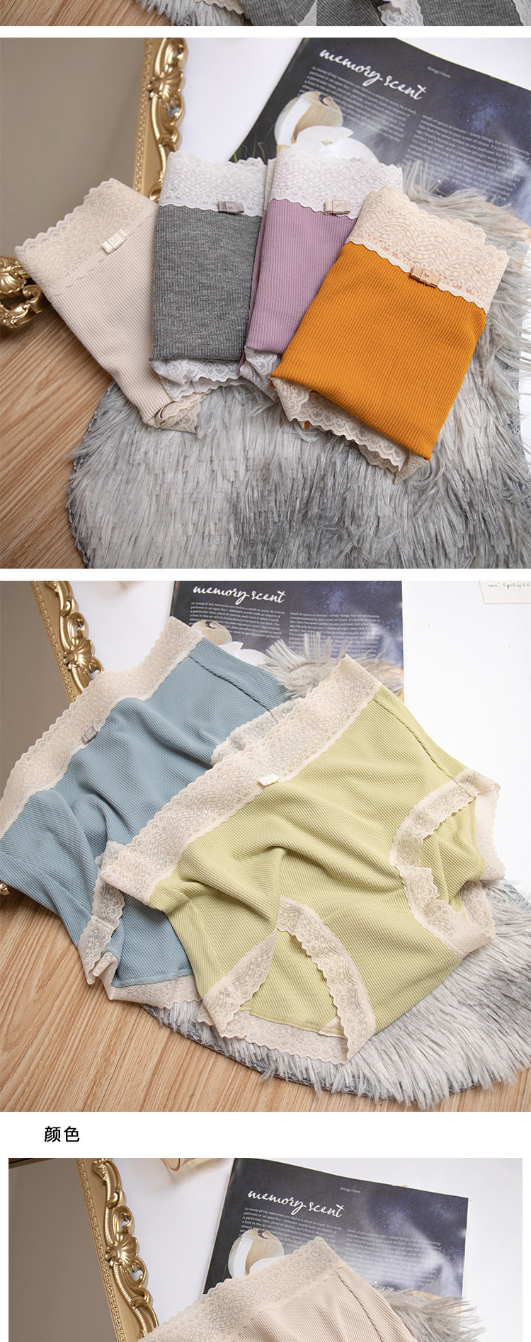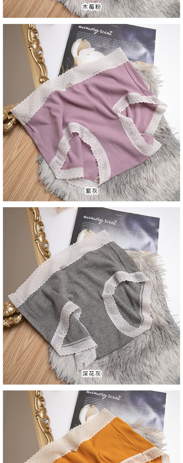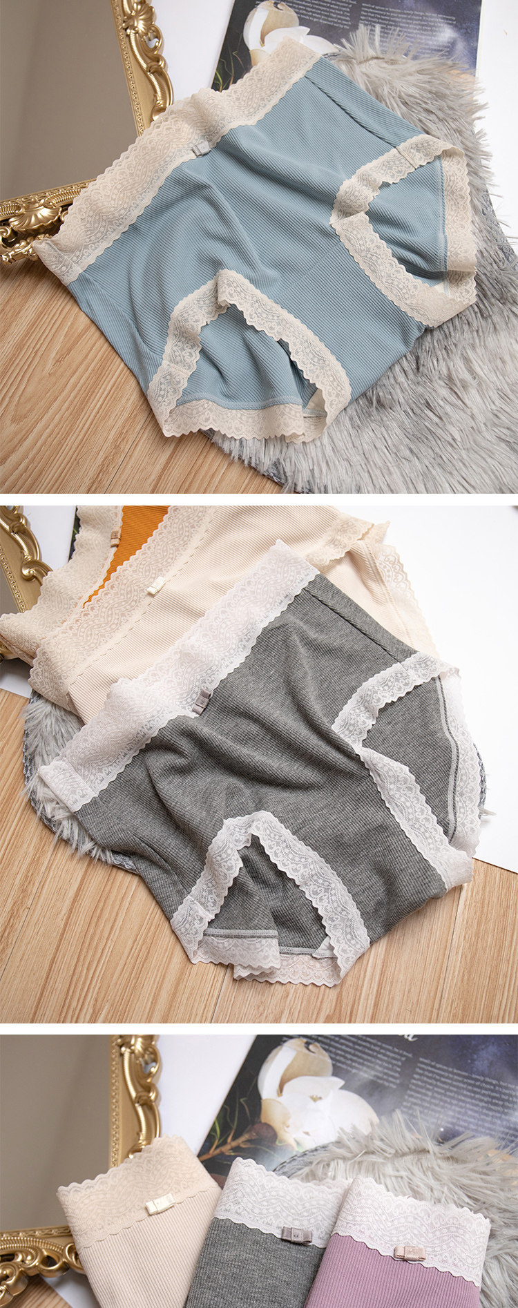 桃醬少女丨親膚柔軟 舒適螺紋蕾絲邊中腰無痕日系溫柔包臀內褲女