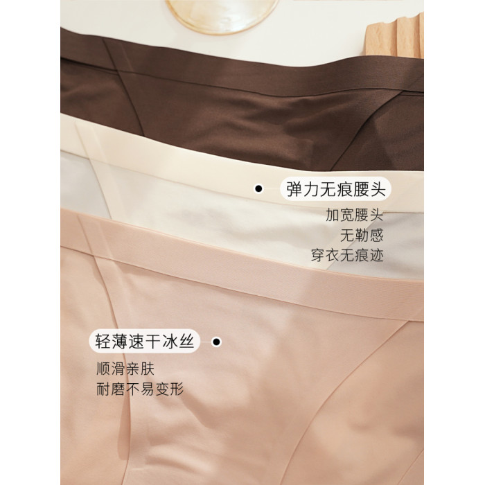 CINOON新款無痕冰絲女士內褲少女風性感高彈低腰半包臀三角褲