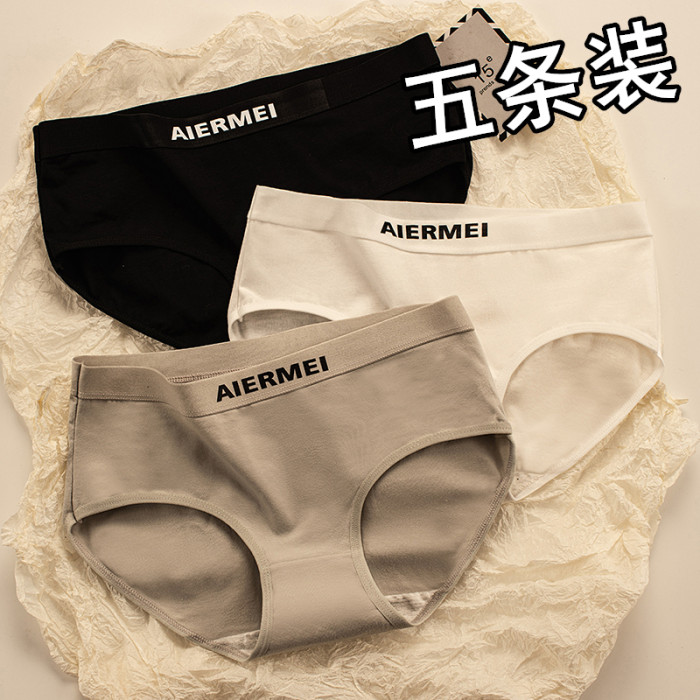 5條 內褲女全棉抗菌中腰韓版少女學生親膚舒適無痕純棉檔女士褲頭