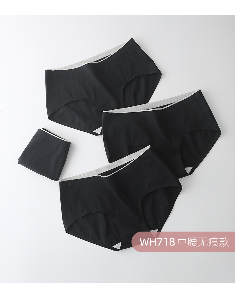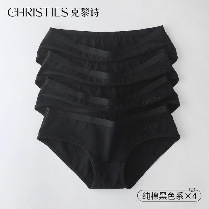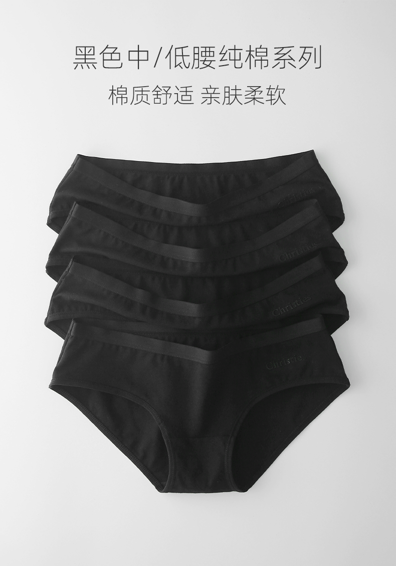 克黎詩黑色內褲女生純棉低腰抗菌無痕簡約中腰黑色女士純色三角褲