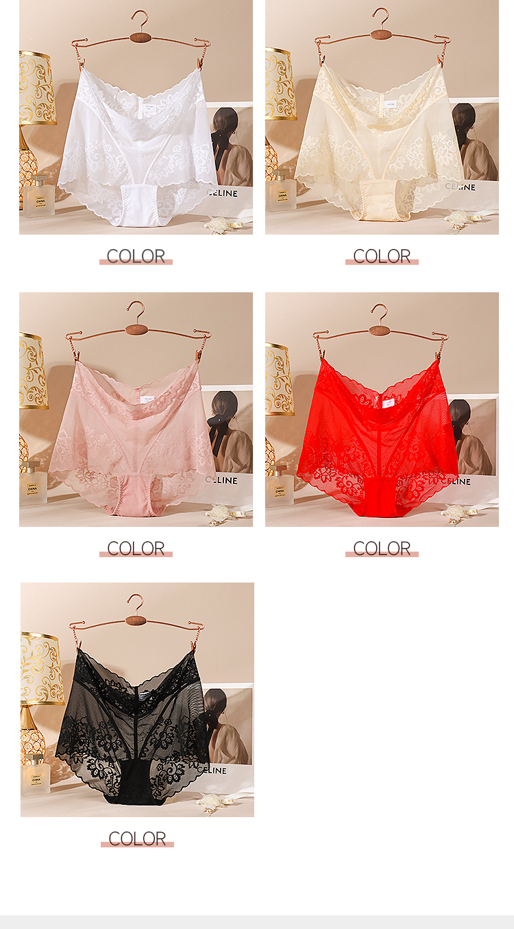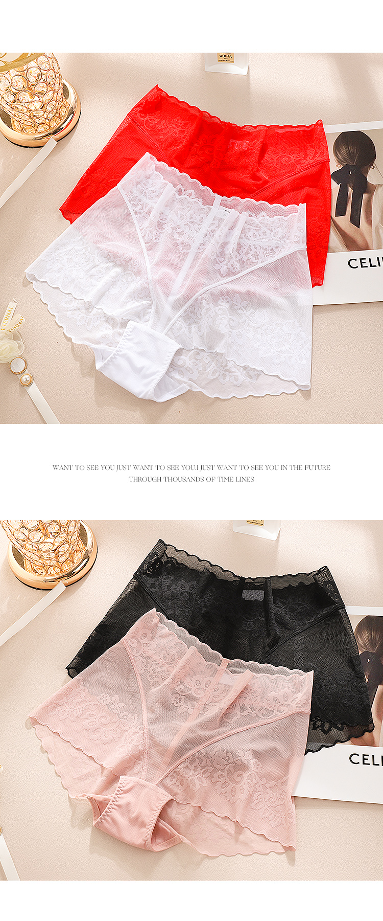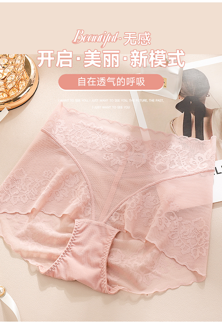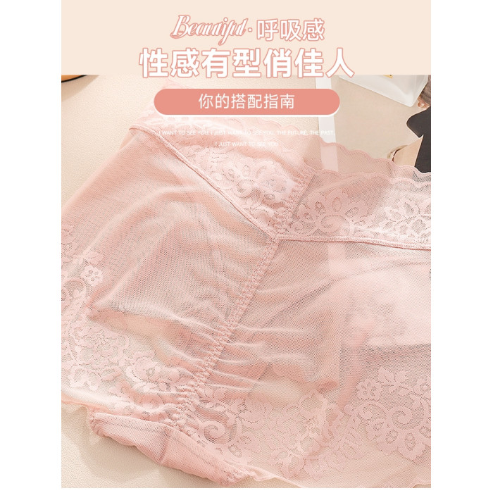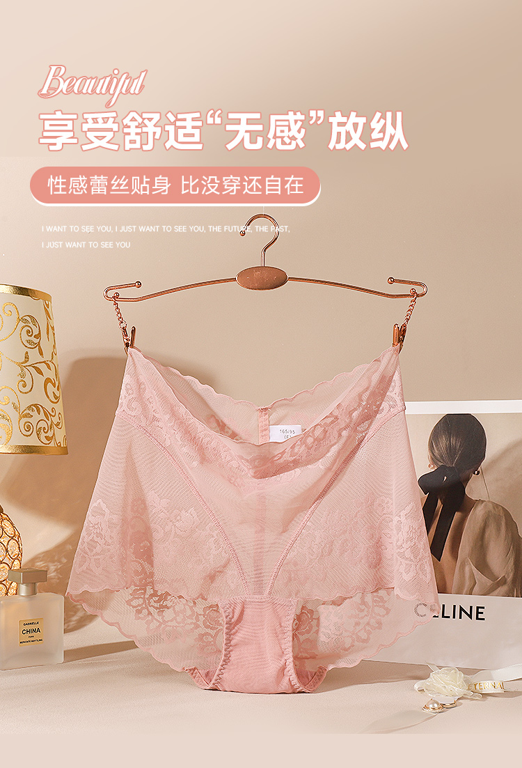 內褲女高腰蕾絲白色性感全透明無痕包臀平角大碼胖MM棉襠時尚新款