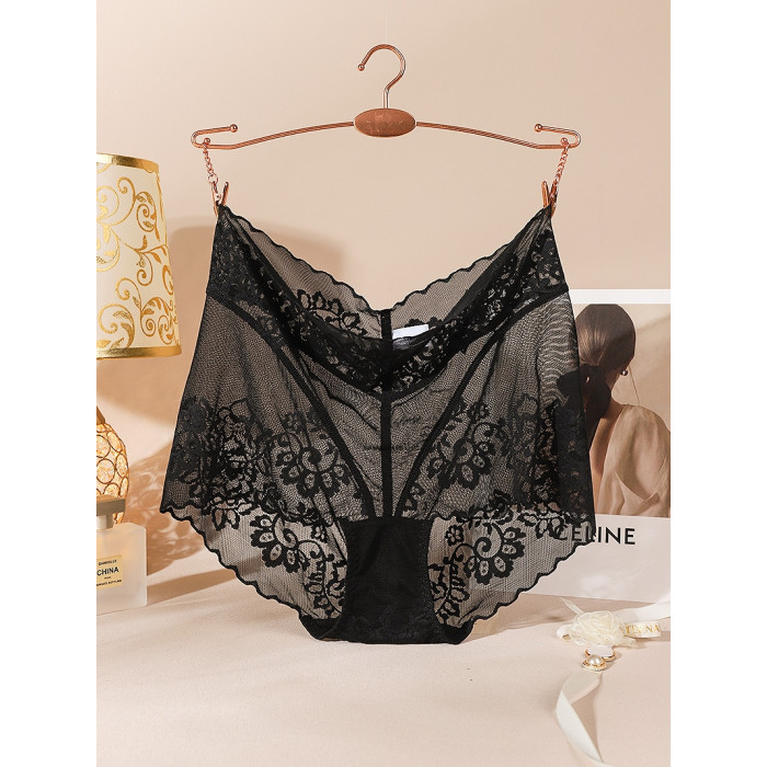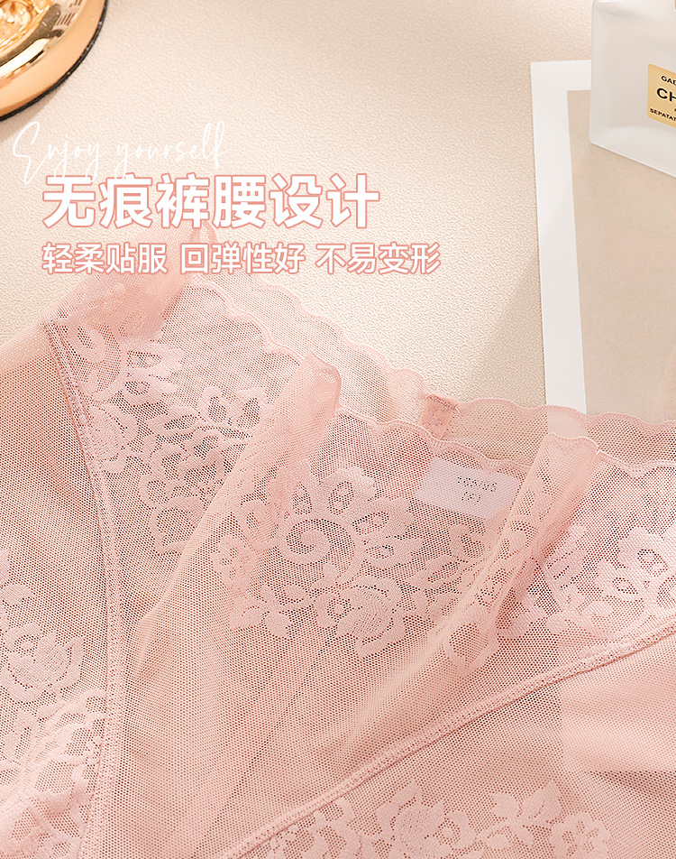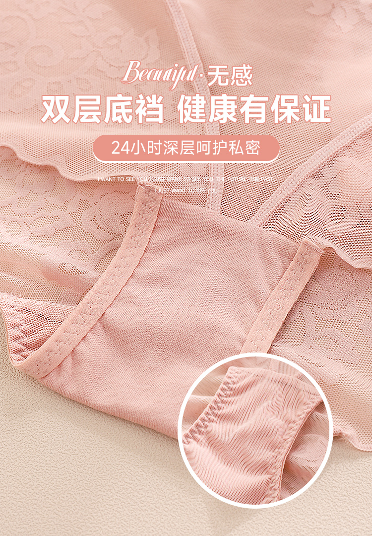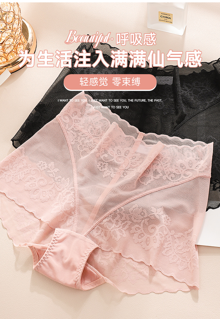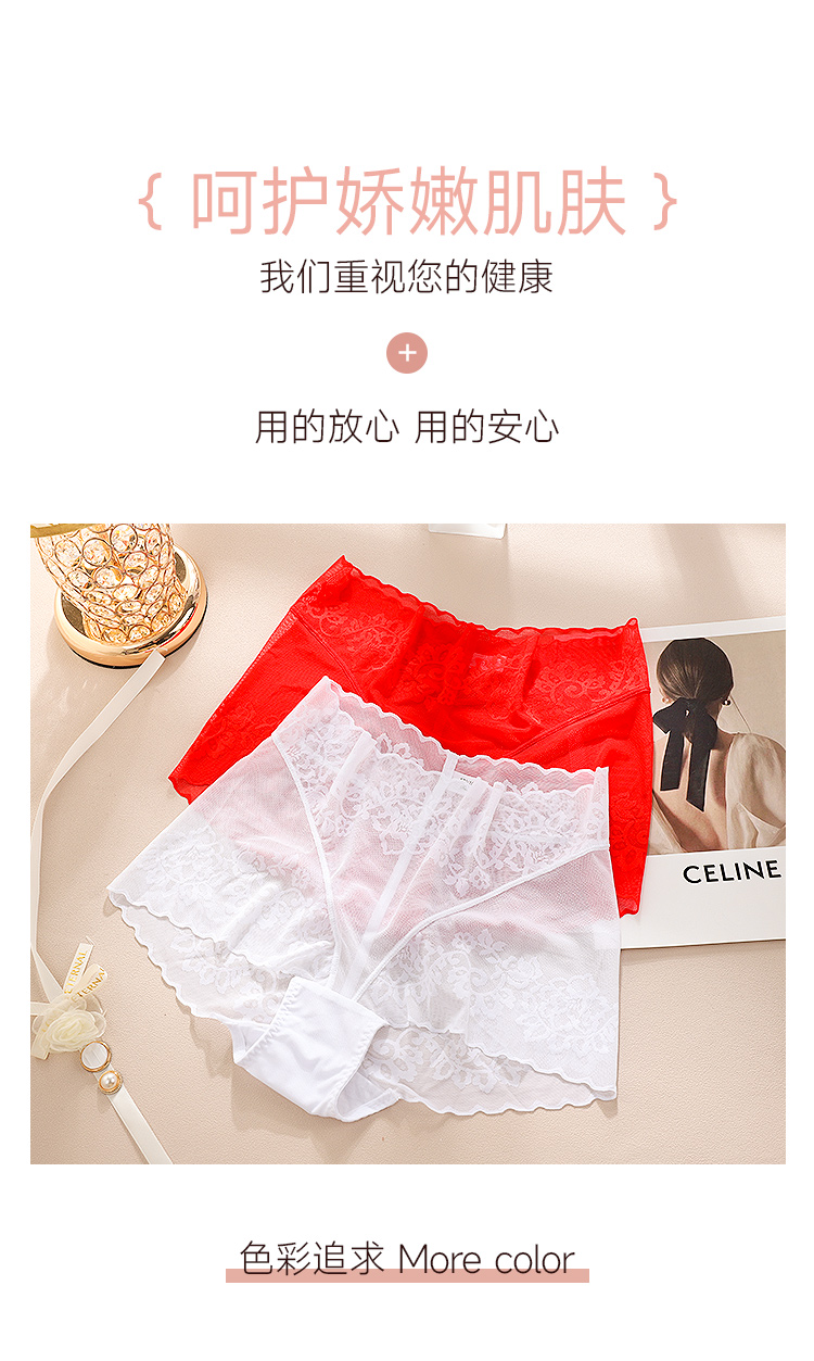 內褲女高腰蕾絲白色性感全透明無痕包臀平角大碼胖MM棉襠時尚新款