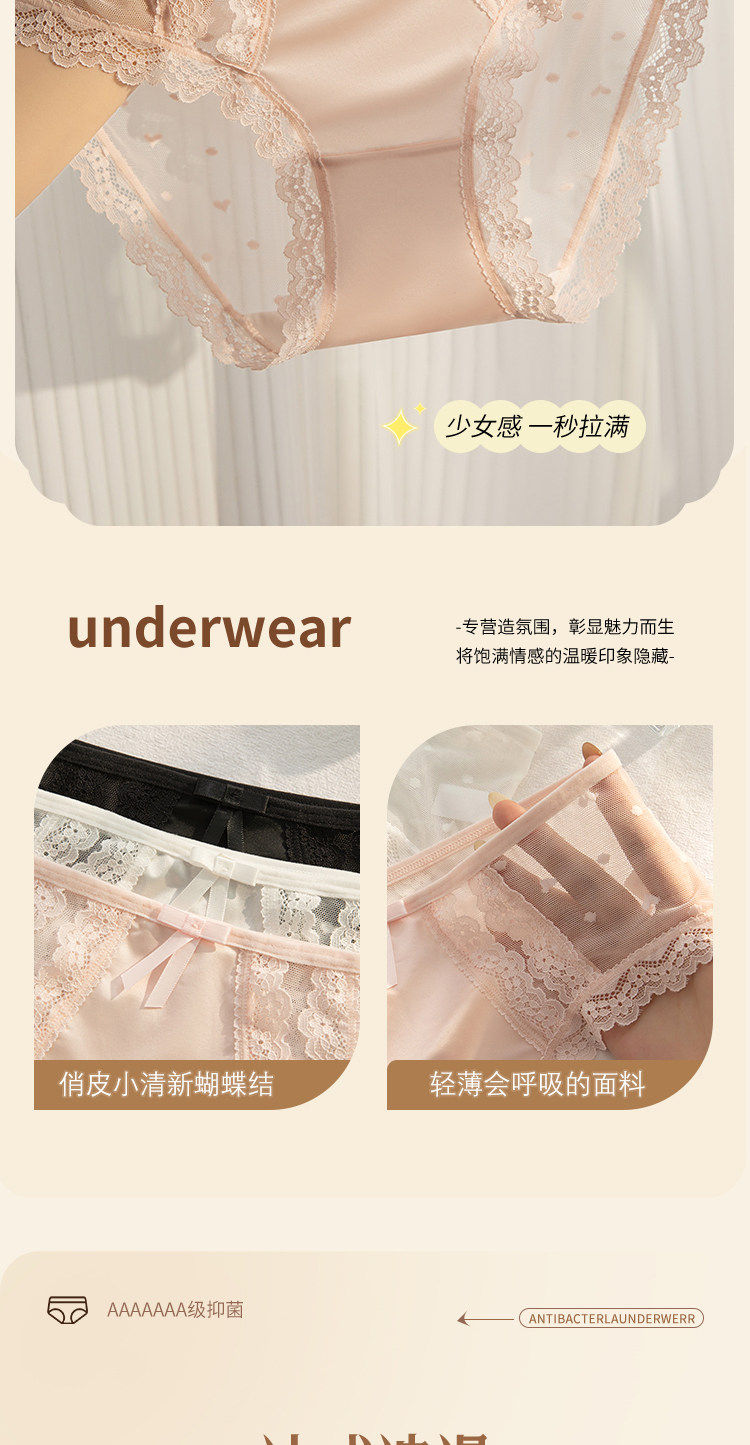貓人內褲女士蕾絲純欲2026新款性感中腰不夾臀無痕女生三角短褲頭