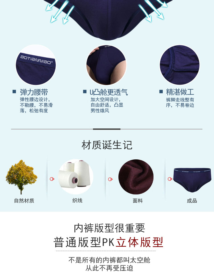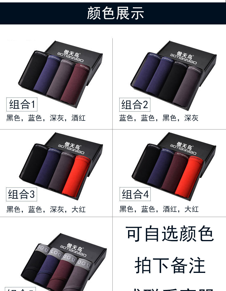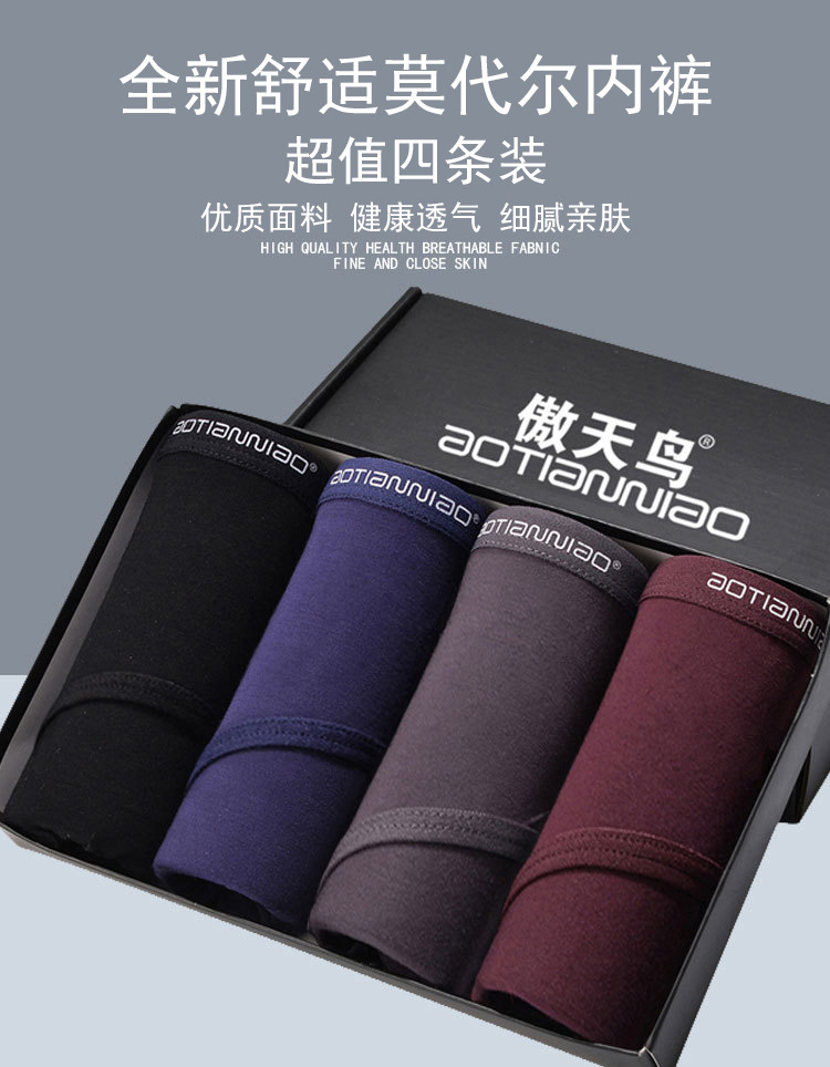 4條男士內褲莫代爾三角褲舒適簡約透氣性感四條盒裝男人星期褲