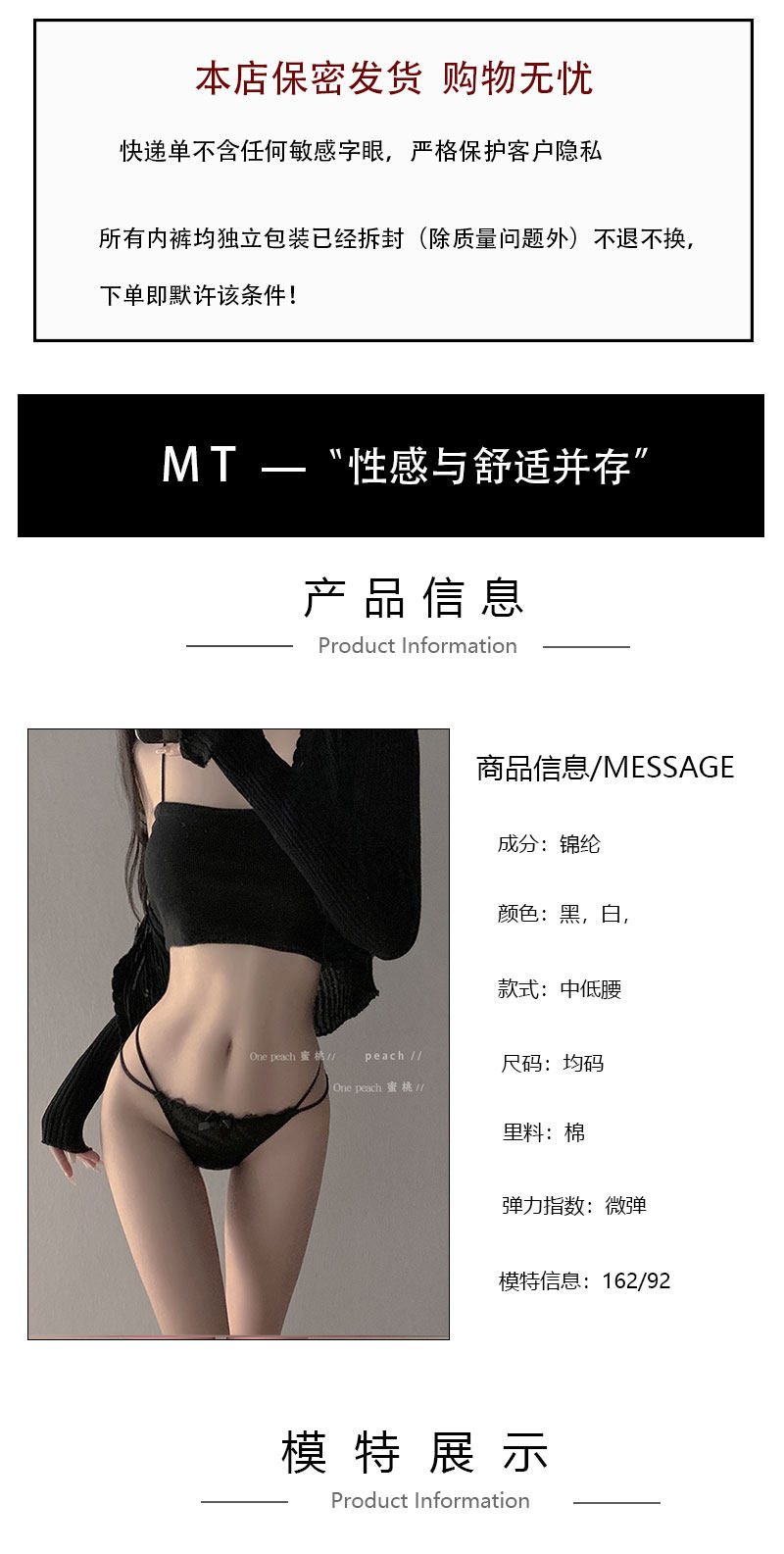 【One peach】法式低腰三角褲黑色蕾絲開叉綁帶內褲2025新純欲風