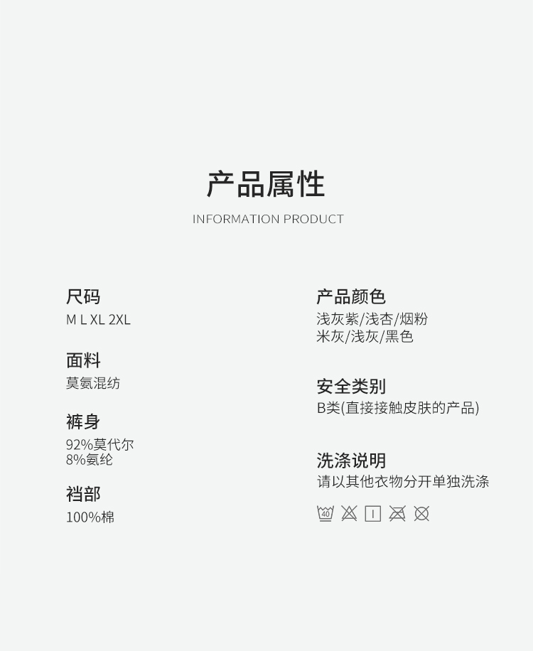 | 大身材質成分 | 莫代爾纖維(莫代爾)92% 聚氨酯彈性纖維(氨綸)8% |