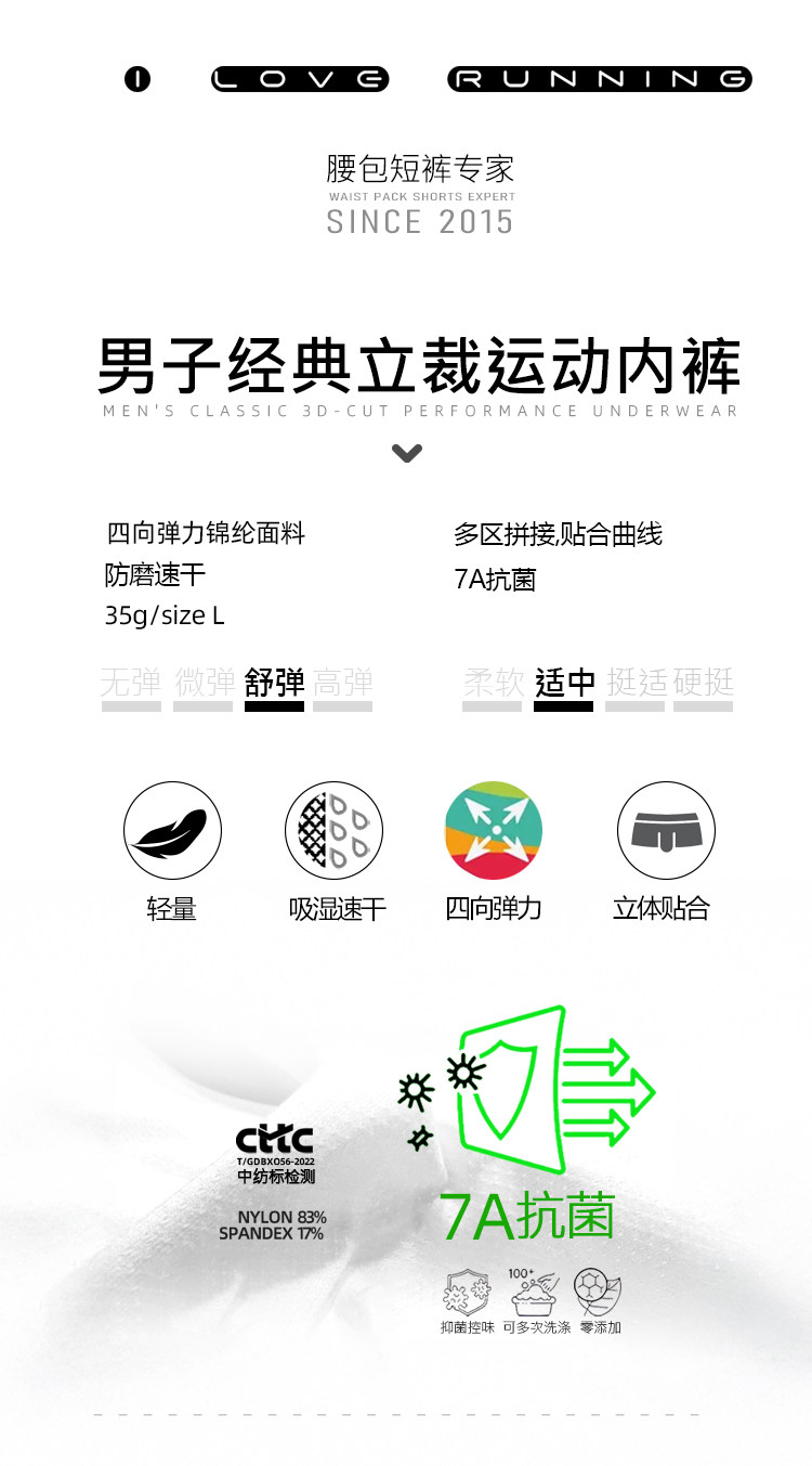 ILoveRunning ILR愛跑新品男戶外運動馬拉松越野防磨平角跑步內褲
