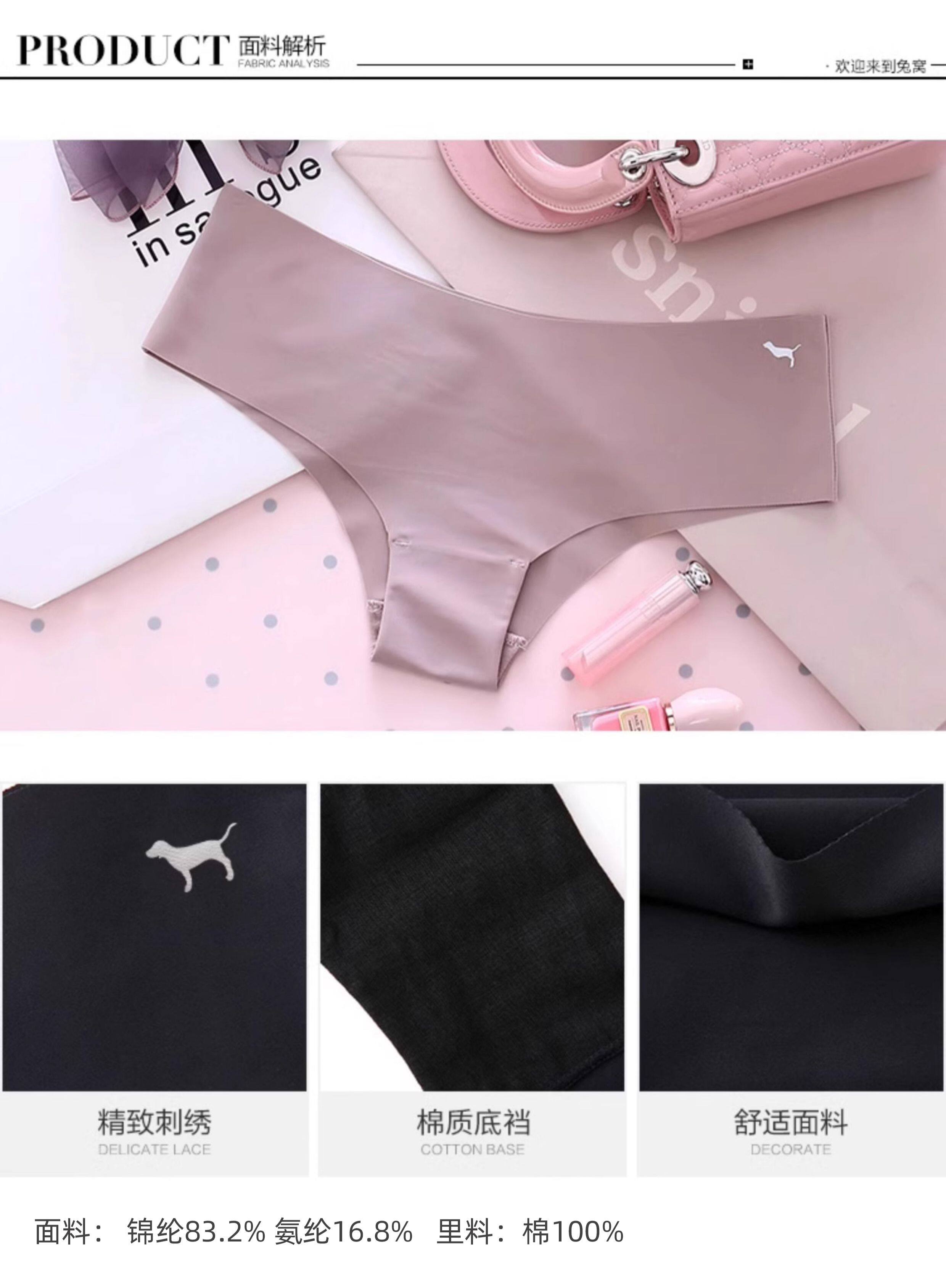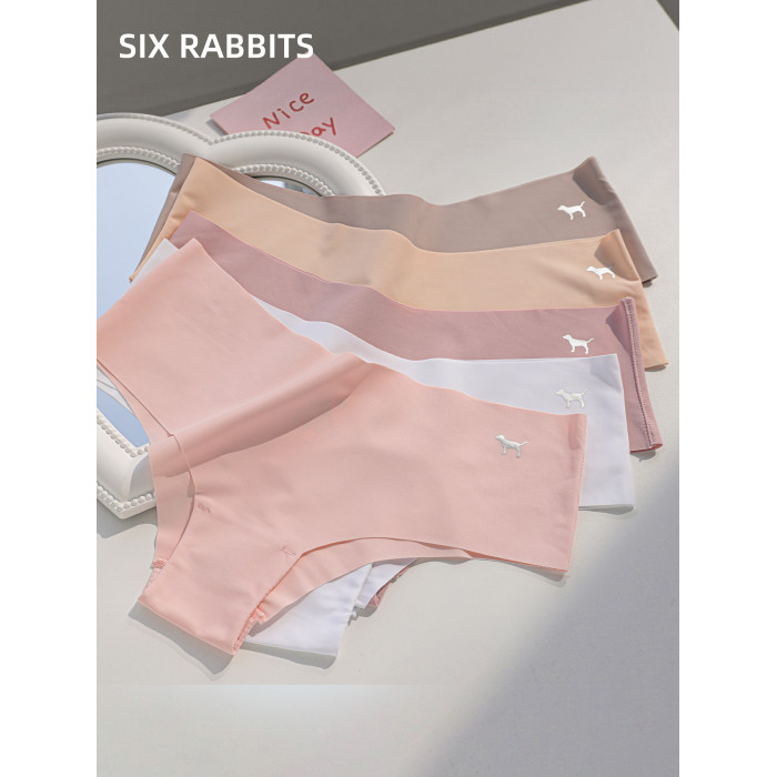 六衹兔子高彈無痕內褲女全棉襠一片式薄款冰絲低腰性感三角褲