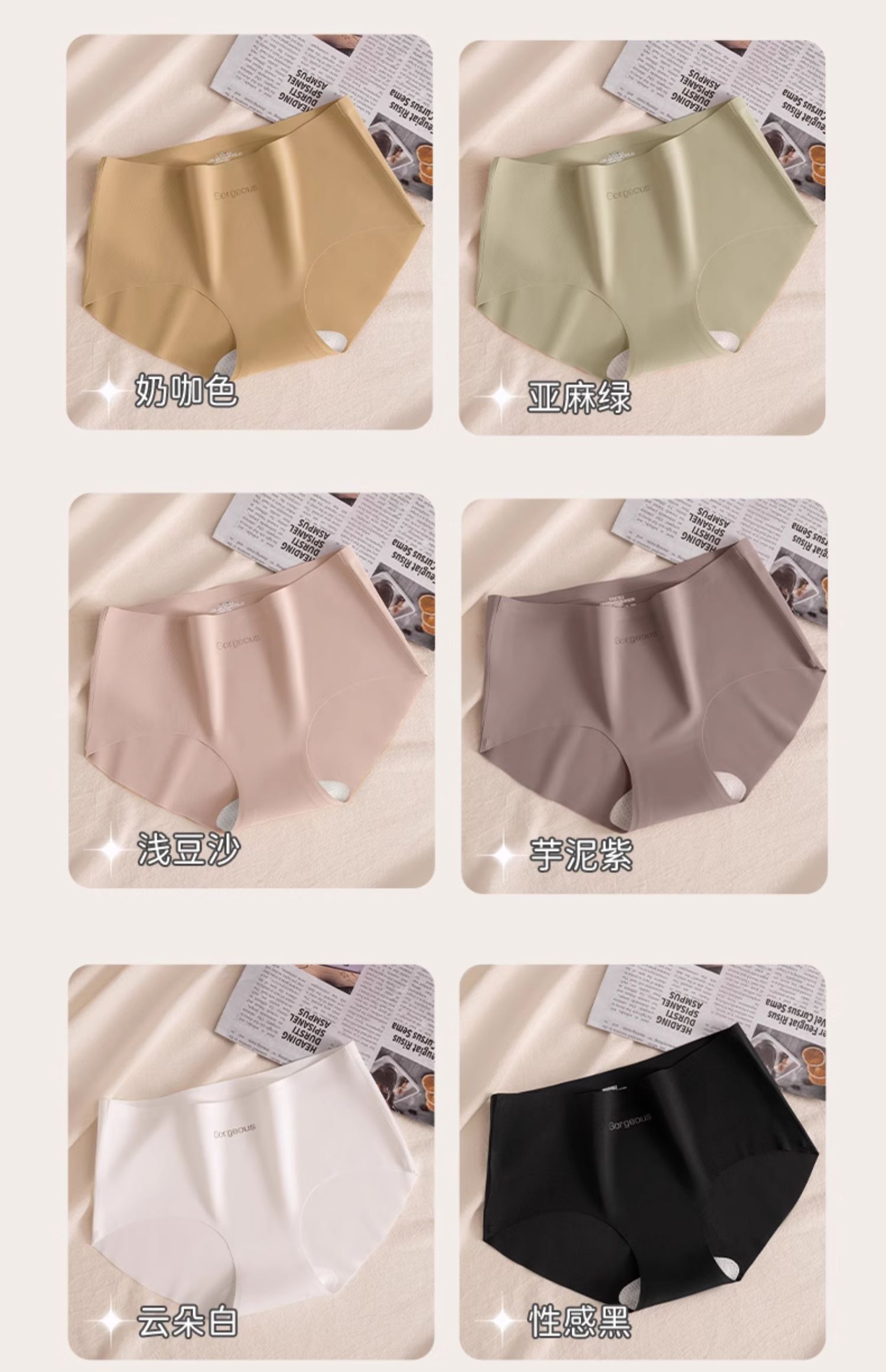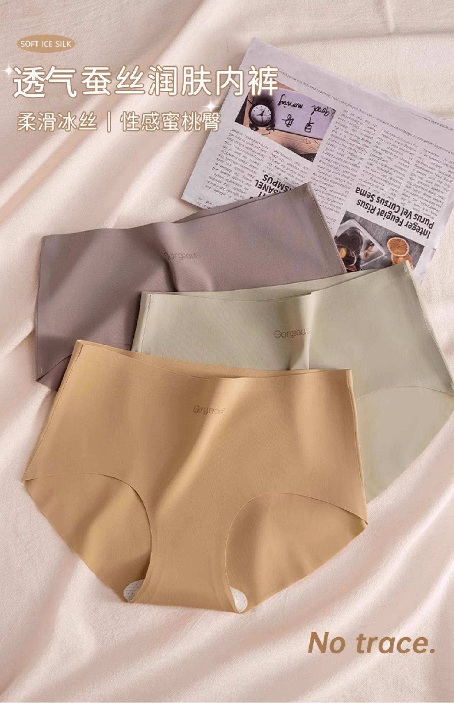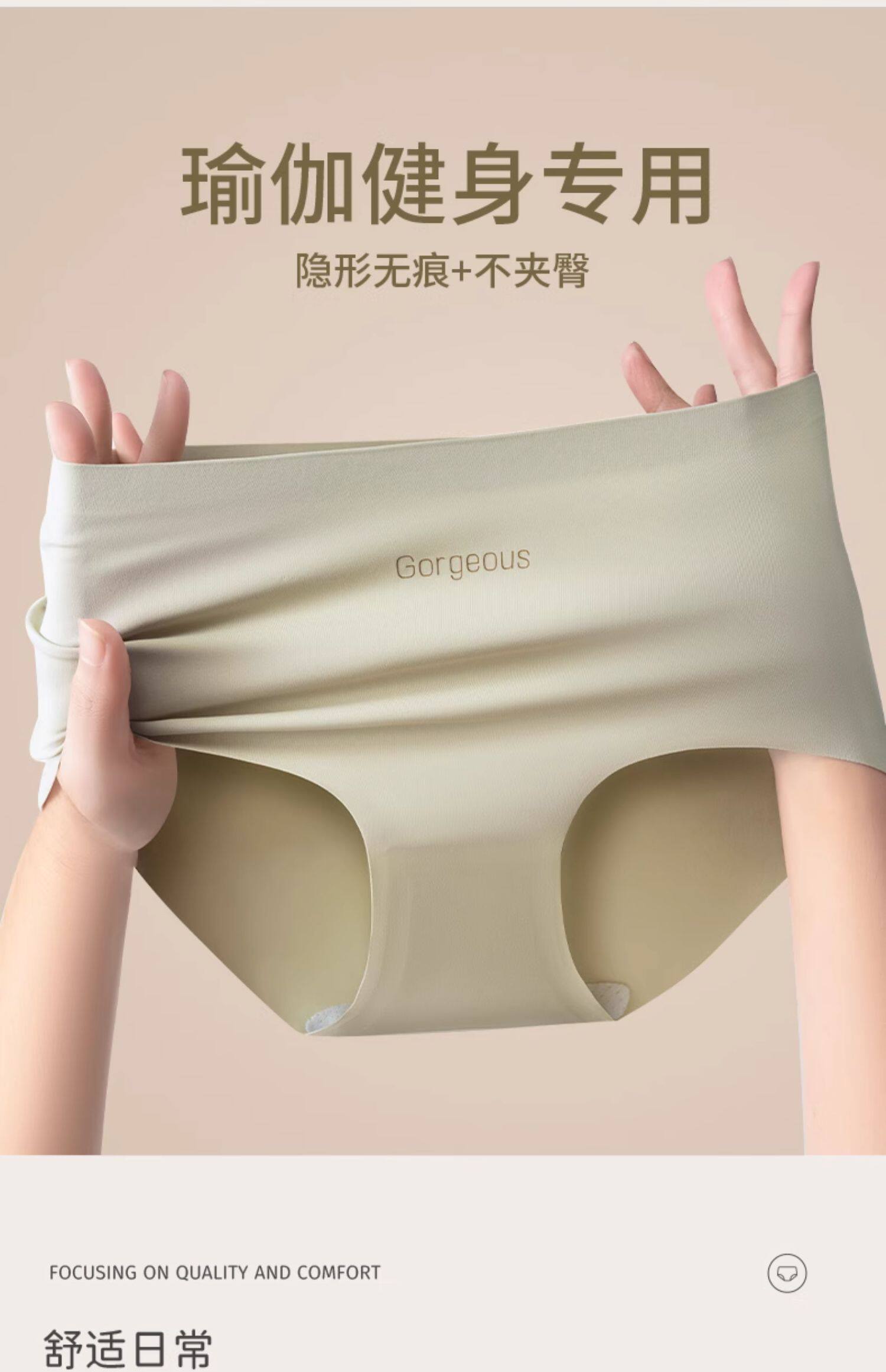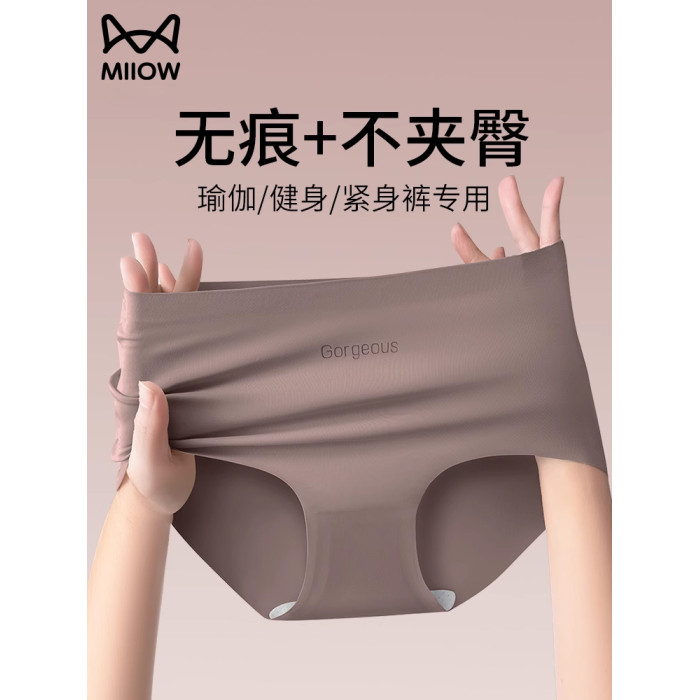 貓人瑜珈健身無痕內褲女士桑蠶絲抗菌襠冰絲女生中腰運動三角褲