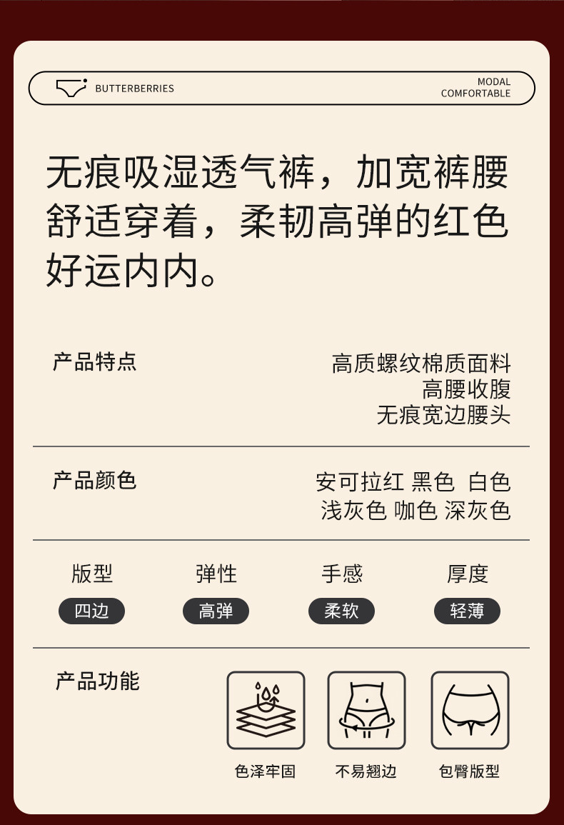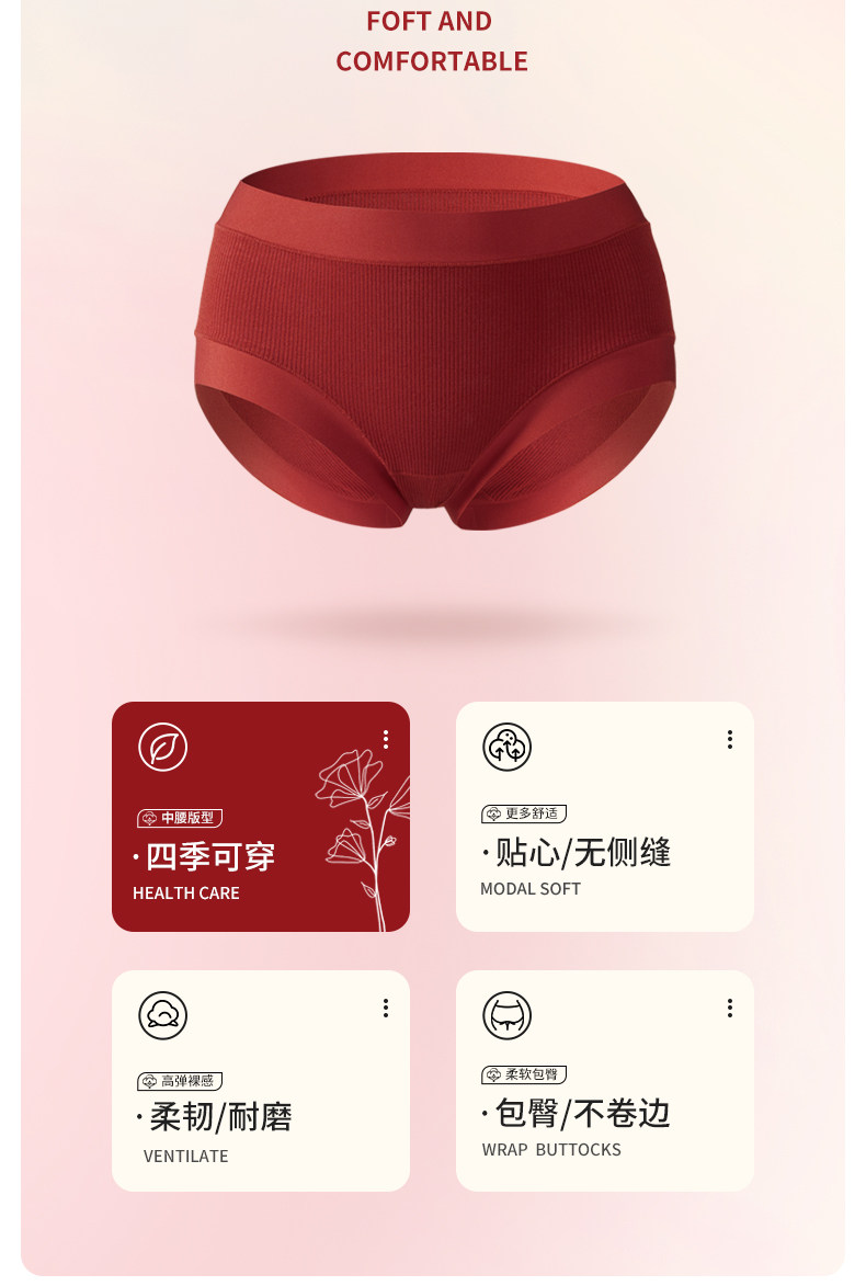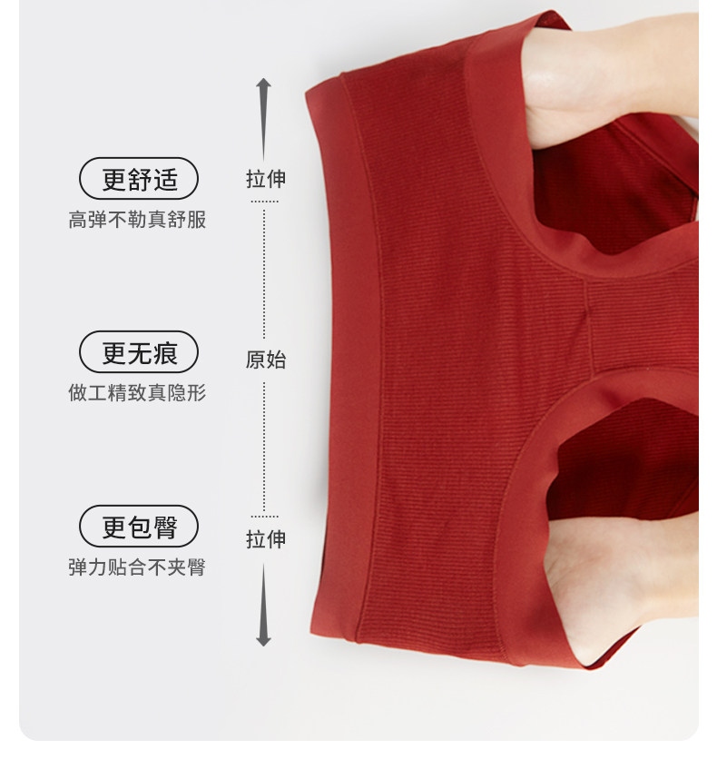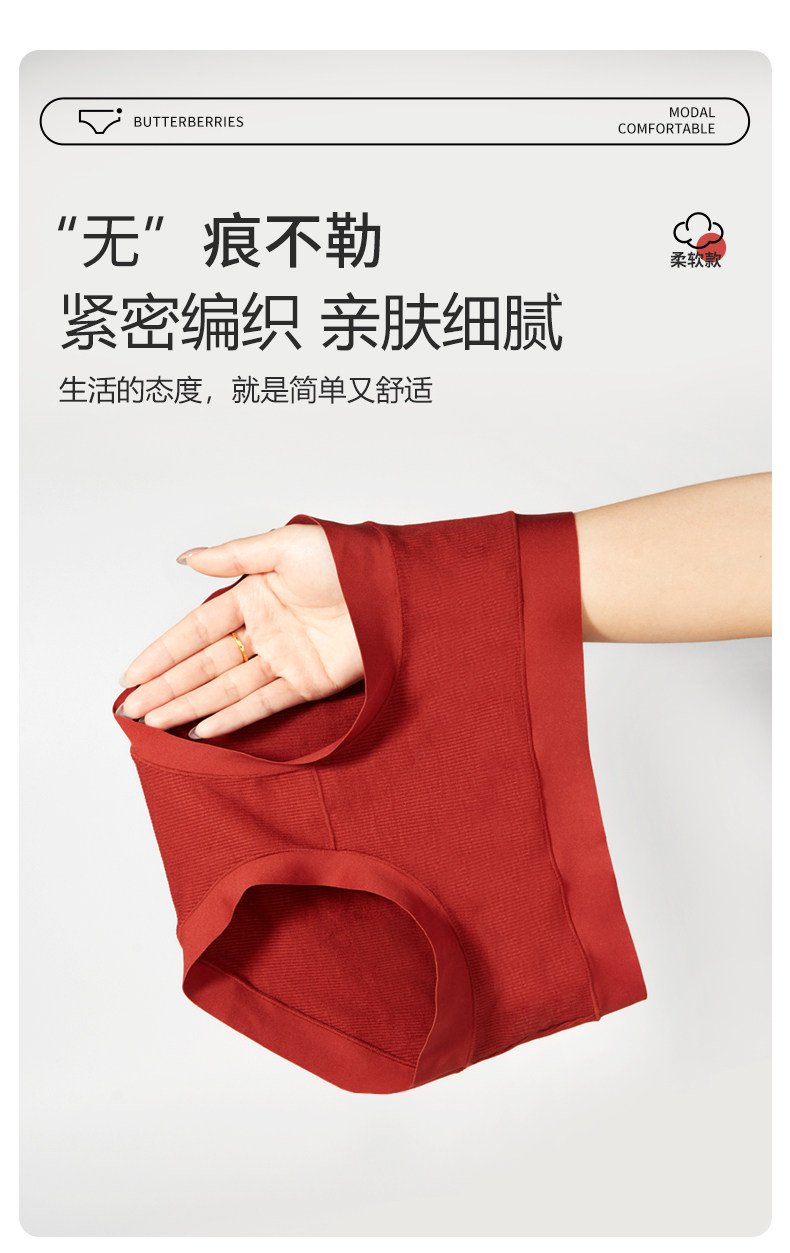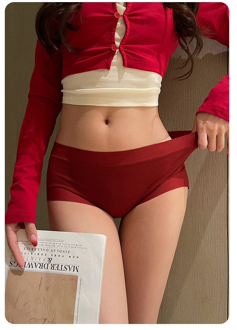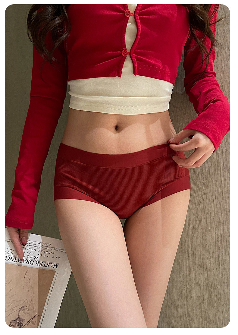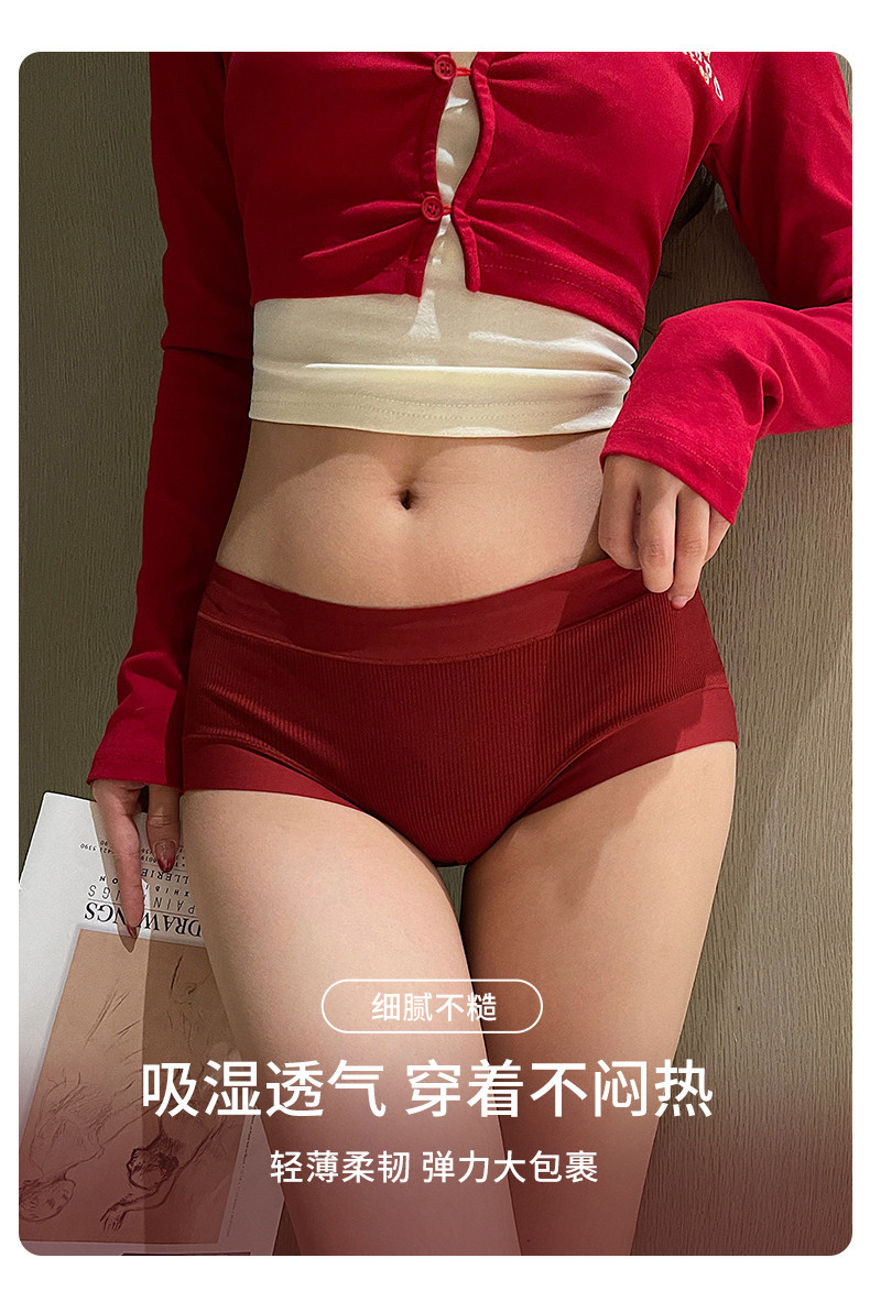 【三條裝】黃油草莓紅色本命年無痕內褲女透氣親膚包臀中腰三角褲